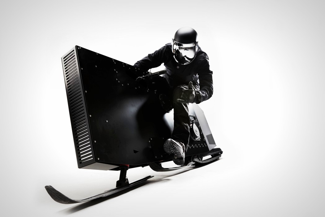 If we were selling snowmobiles to you a week ago, you would have said that we are a bit over the top, because we are still in the middle of spring. But nature is unpredictable, just as design is sometimes unpredictable. What you are looking at is a snowmobile, not some enlarged computer component! Meet Snoped, Bond's next getaway vehicle!