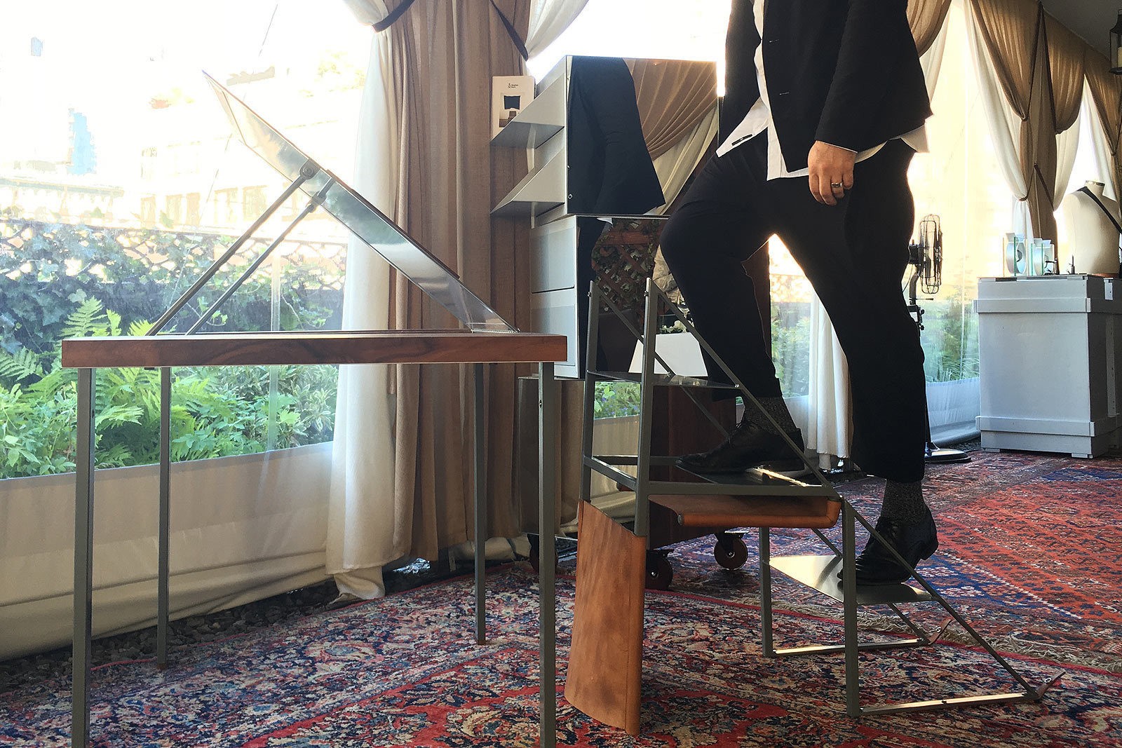 Some solutions are so obvious that it seems someone invented them a long time ago. Such is the case with the chair, which is also a ladder, a coffee table and more, signed by Stephen Kenn and Victorinox (maker of the iconic Swiss Army knives). No wonder they call him the Swiss army knife between chairs...