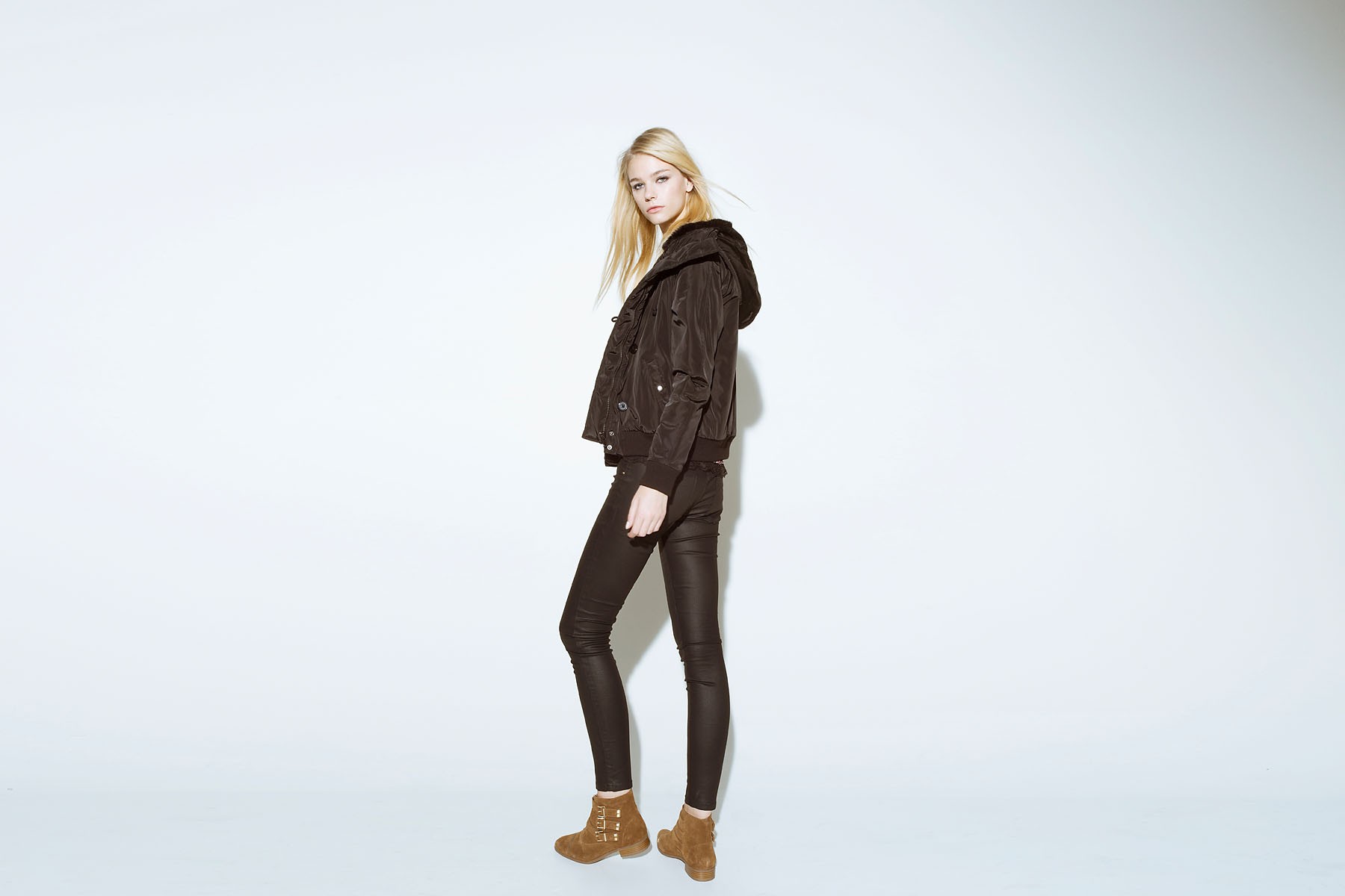 The November Stradivarius lookbook brings urban black and white combinations that alternate between pepita patterns, stripes, checks, and flowers.