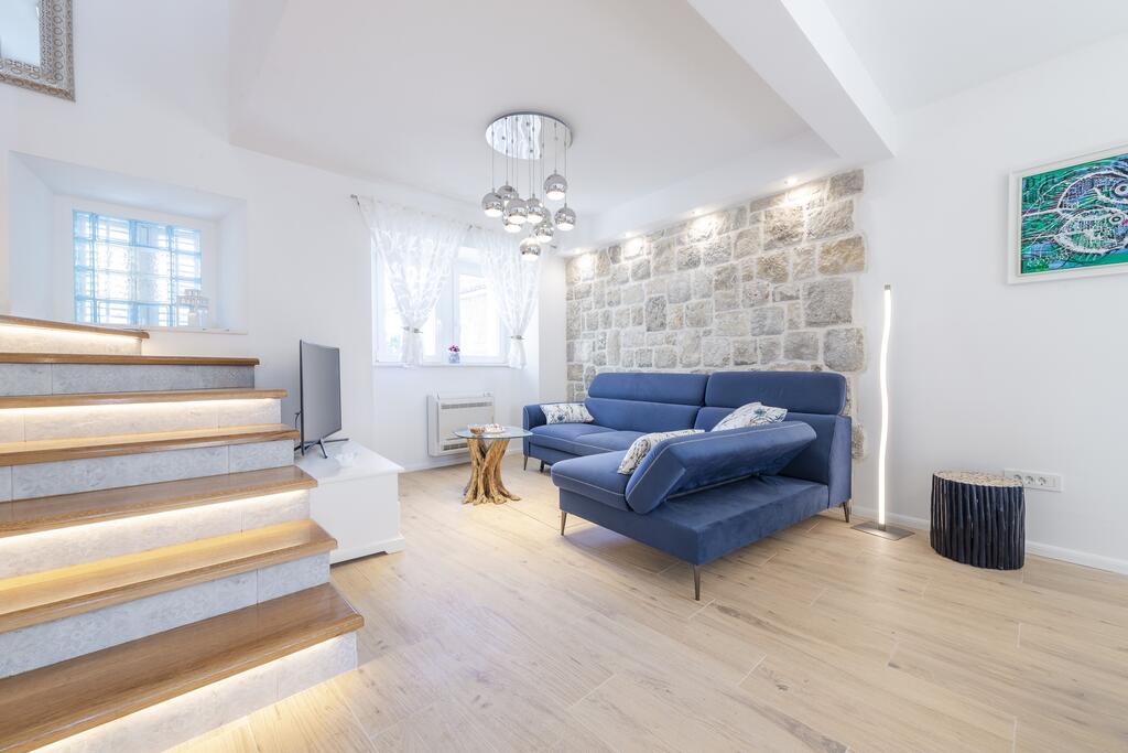 The stunning and luxurious Villa Baburizza is a renovated 400-year-old stone house located next to a 14th-century church at the top of the village of Donje Čelo on the island of Koločep. This beautiful villa is spread over two floors. It is furnished and decorated in the Mediterranean taste of blue and white colors as a reflection of the sea, sky and stone in a unique mix of traditional and modern. It boasts a beautiful panoramic sunset view to the bay, the island of Lopud and beyond. The villa comprises three bedrooms, a fully equipped kitchen with a spacious dining room and a living room. There is an enclosed garden with garden furniture, a dining table and a barbecue. From the garden and the bedrooms, there is a sun terrace and a pool with massage jets, from where you can enjoy a wonderful view of the sea or stunning sunsets.