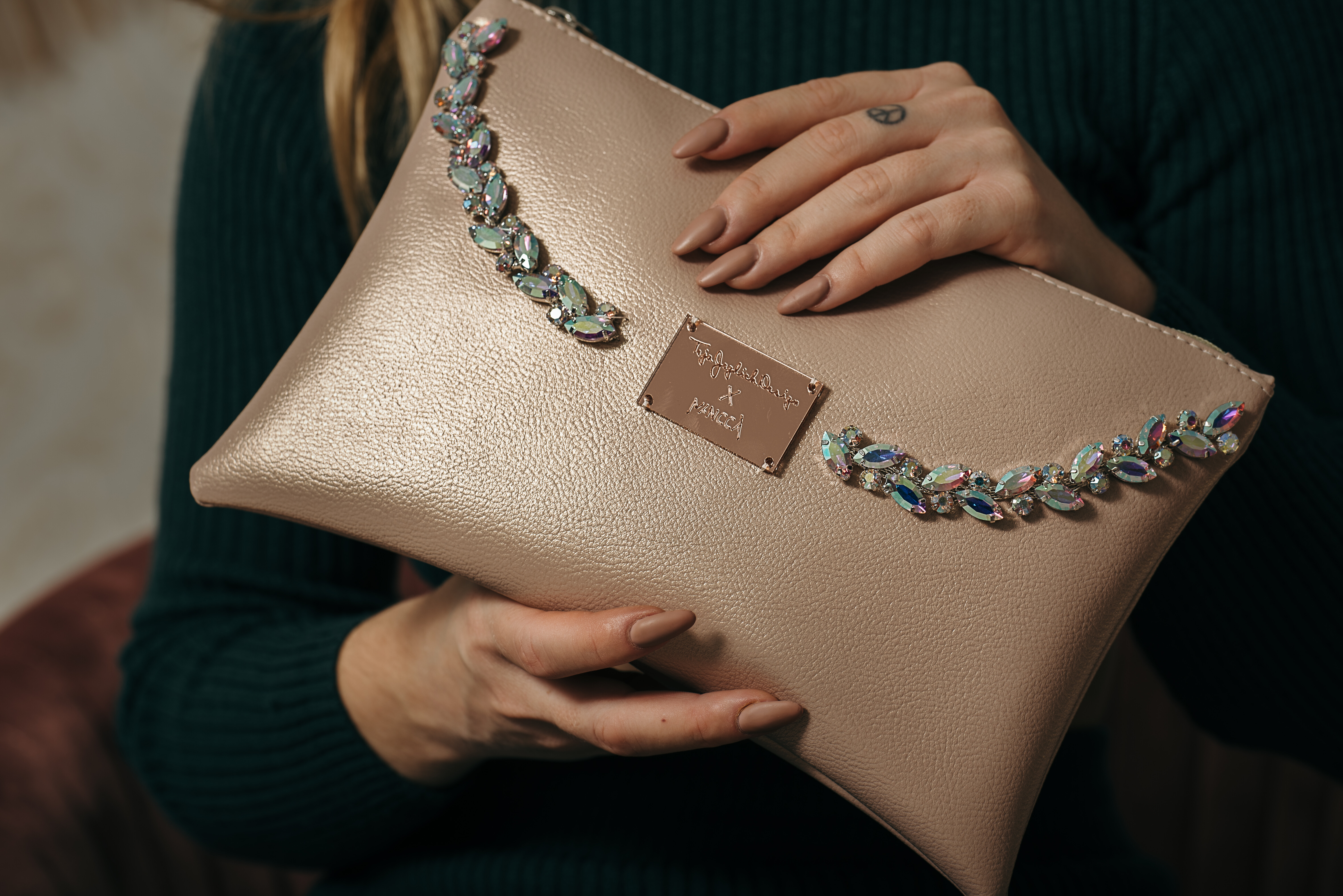 Fashion designers Teja Jeglič and Manca Končnik joined forces, intertwined the fashion story of jewelry and handbags and created the CRYSTAL DREAMS collection. The red thread of the collection of toiletry bags, which are unique and handmade (only one piece of each is available), are the sparkling details and their desire to create together.
