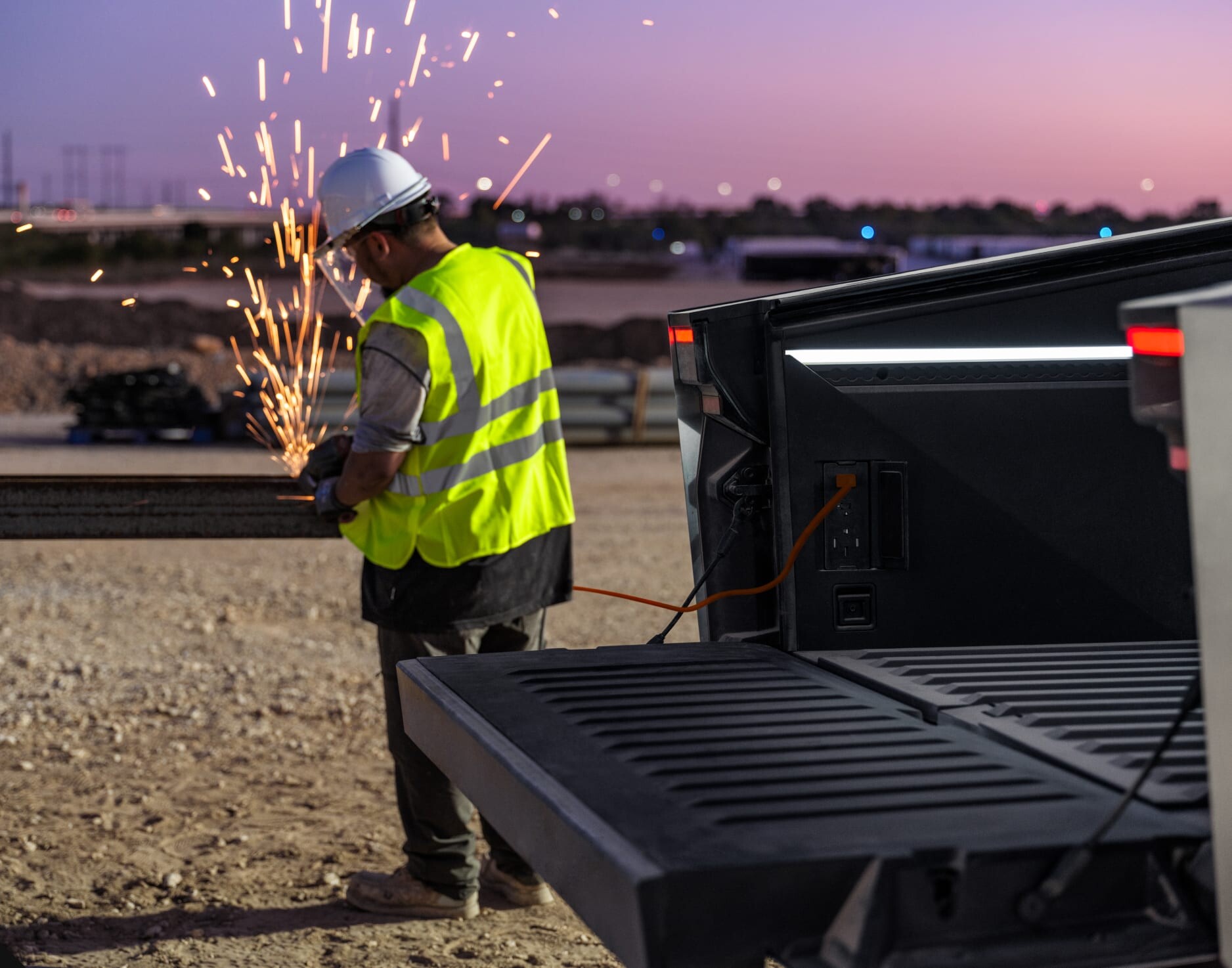 Its exterior is colorless, made of ultra-hard stainless steel, which prevents dents, damage and corrosion. In addition, it is equipped with armor-resistant glass windows that withstand impacts of up to 70 mph (approximately 113 km/h) or size 4 hail. With its towing and payload capacity of 1,134 kg (approximately 2,500 pounds), the Cybertruck can compete with the most difficult challenges and is better than most of the competition here as well.