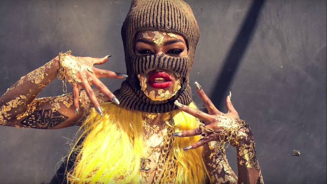 Teyana Taylor is a name worth remembering. Until last week, the practically unknown actress and dancer is experiencing a meteoric rise thanks to the music video for the song Fade by Kayne West, in which she shows off her luxurious dancing skills, sexy body and finally transforms into a cat. But Teyana is not resting on her laurels and strikes while the iron is hot. So this time she danced on her own inspiration to Kanye West's Champions, naked and drenched in gold and miniature AK-47s.