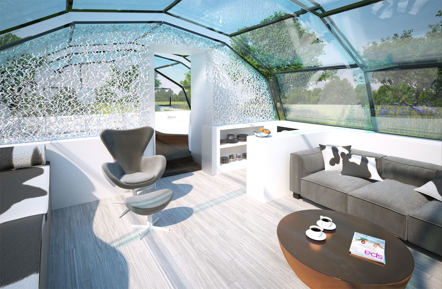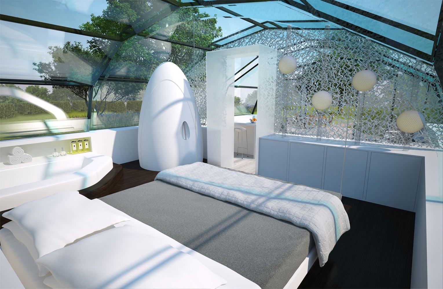 The Photon Space, designed using nano-technology and a multi-layered and high-performance glass wall, enables residents living in natural light. A work based on the professor's research of Russell Foster of Oxford, The Photon Space redirects technology to harness the sun beyond solar power and feed inhabitants with invisible photoreceptors for better physical and psychological health.