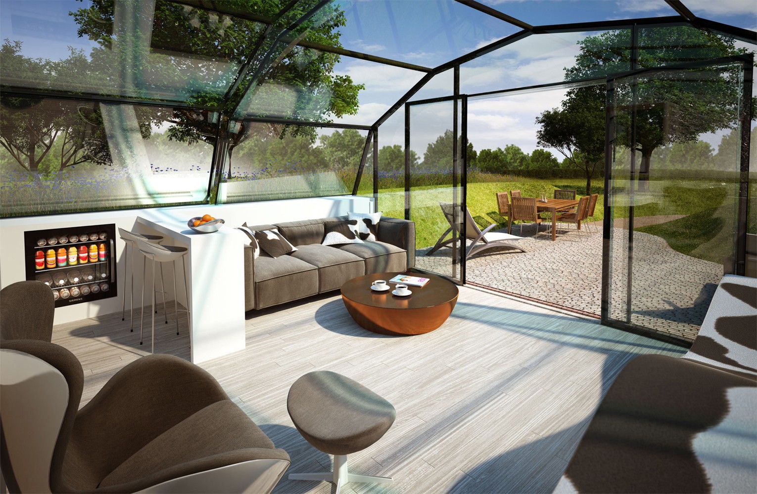 The glass panels are double and triple glazed and offer maximum capacity for effective control of internal heat, without over-reliance on heating and cooling.