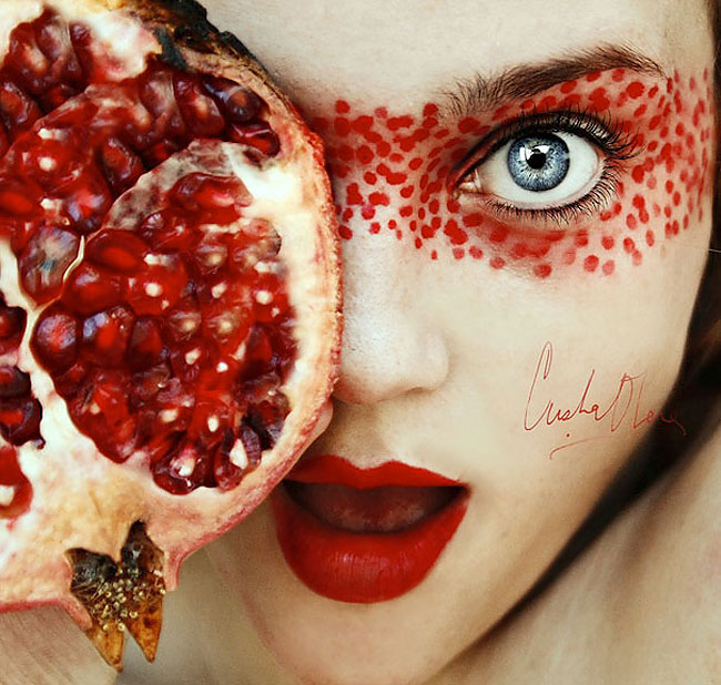 Tutti Frutti is a series of self-portraits of Spanish women Cristina Otero, a creative young artist who loves fruit. The Madrid woman expresses her love for him with portraits, on which posing with fruit and a face made up in the colors and motif of the same fruit.
