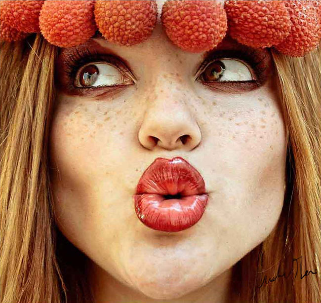 Young artist Cristina Otero is crazy about fruit, and she's not ashamed to show it! She started taking photos at the age of thirteen, and her works quickly gained many fans. She became the youngest photographer to exhibit at the famous Spanish gallery in Valencia. Her passion? Turning into fruit!