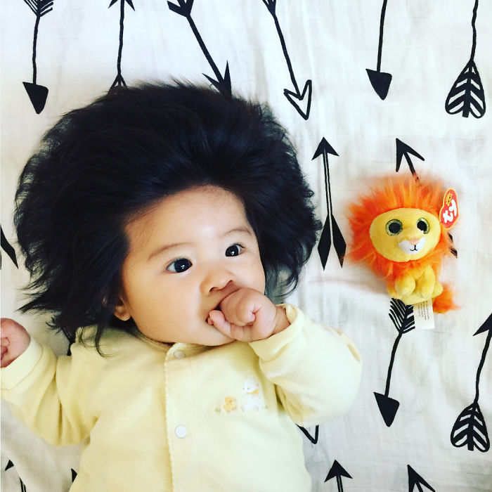 Lion's mane is the best synonym for the hair of six-month-old Japanese girl Chanco, whose 'mane' is literally unruly.