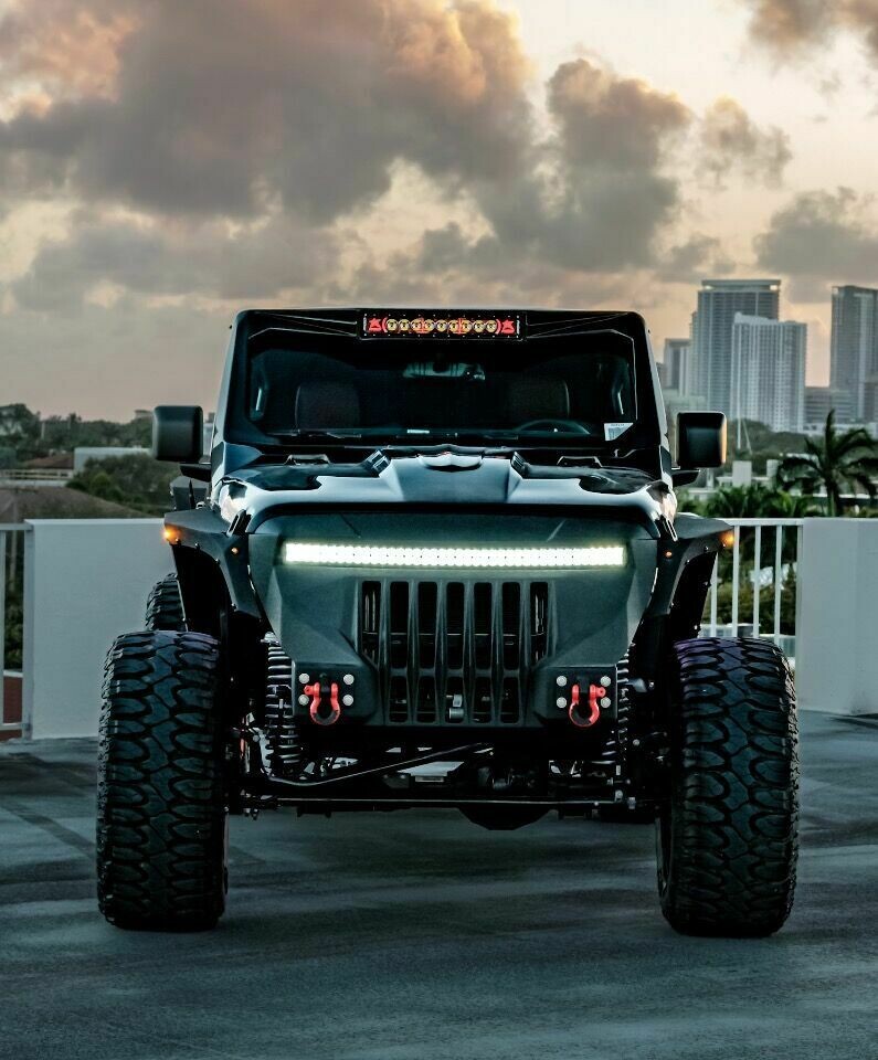 They took the Jeep Gladiator as a base, made a six-wheel drive, added a 6.2-liter Hellcat engine with a supercharger that offers about 750 horsepower. The cargo area is covered for better usability, the mudguards are made of kelvar, and many parts of the vehicle have been replaced and optimized. For better or less weight. The front fascia is customized with an LED light bar. The edge of the windshield is also reinforced, which gives the car a "fighting" look.