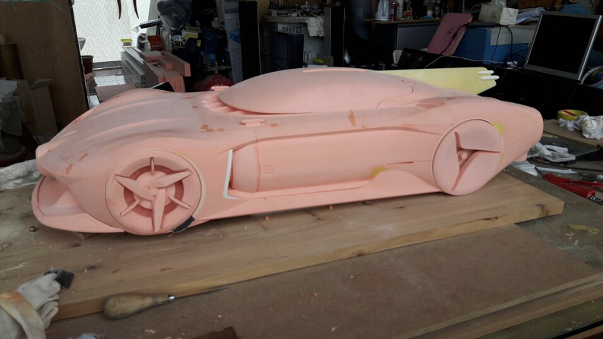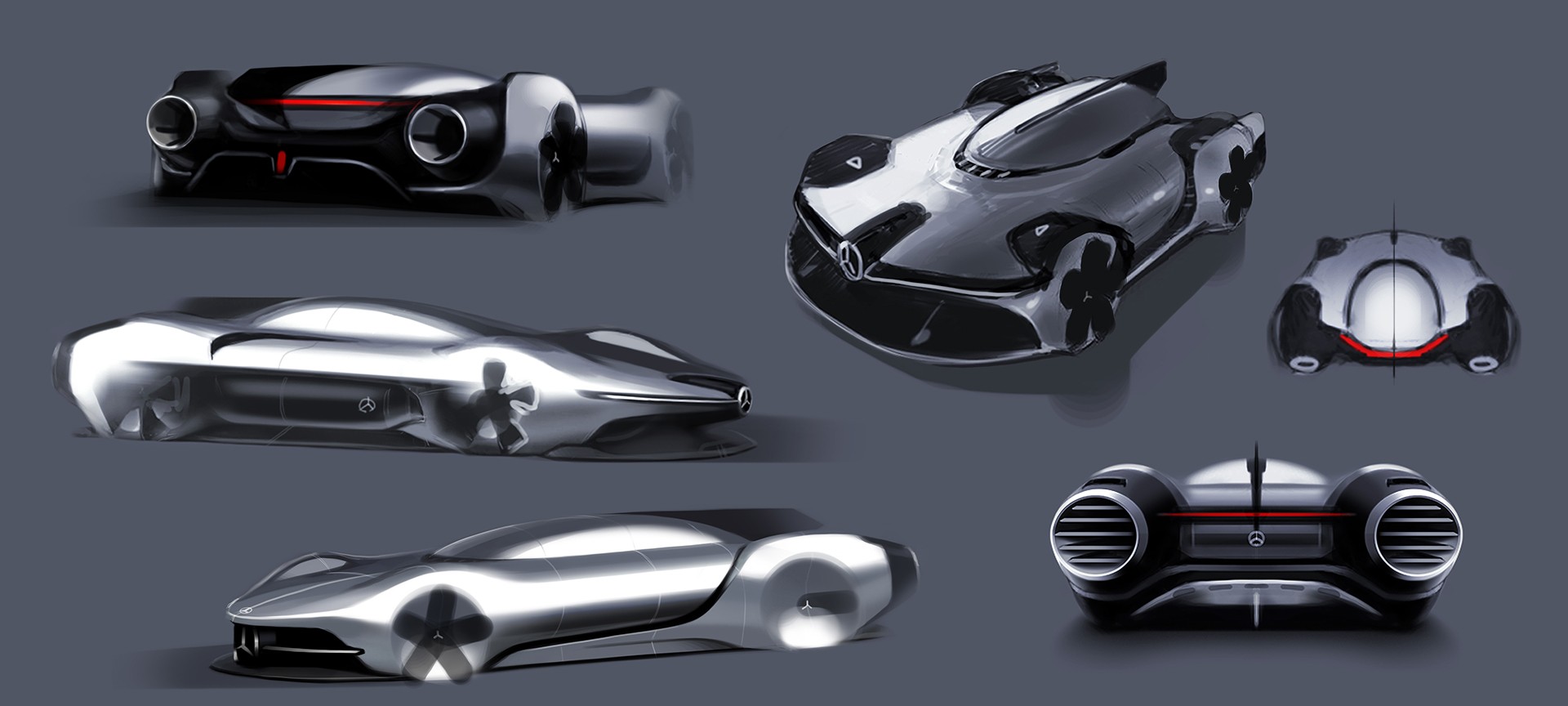 He signs under it Minwoong Im, which claims that the Mercedes-Benz 2040 W196R Streamliner would because of of jet propulsion easily broke all speed records. Although it partially follows the lines of a racing car from the fifties, we find more similarities with a supersonic aircraft than ancient Formula 1 cars.