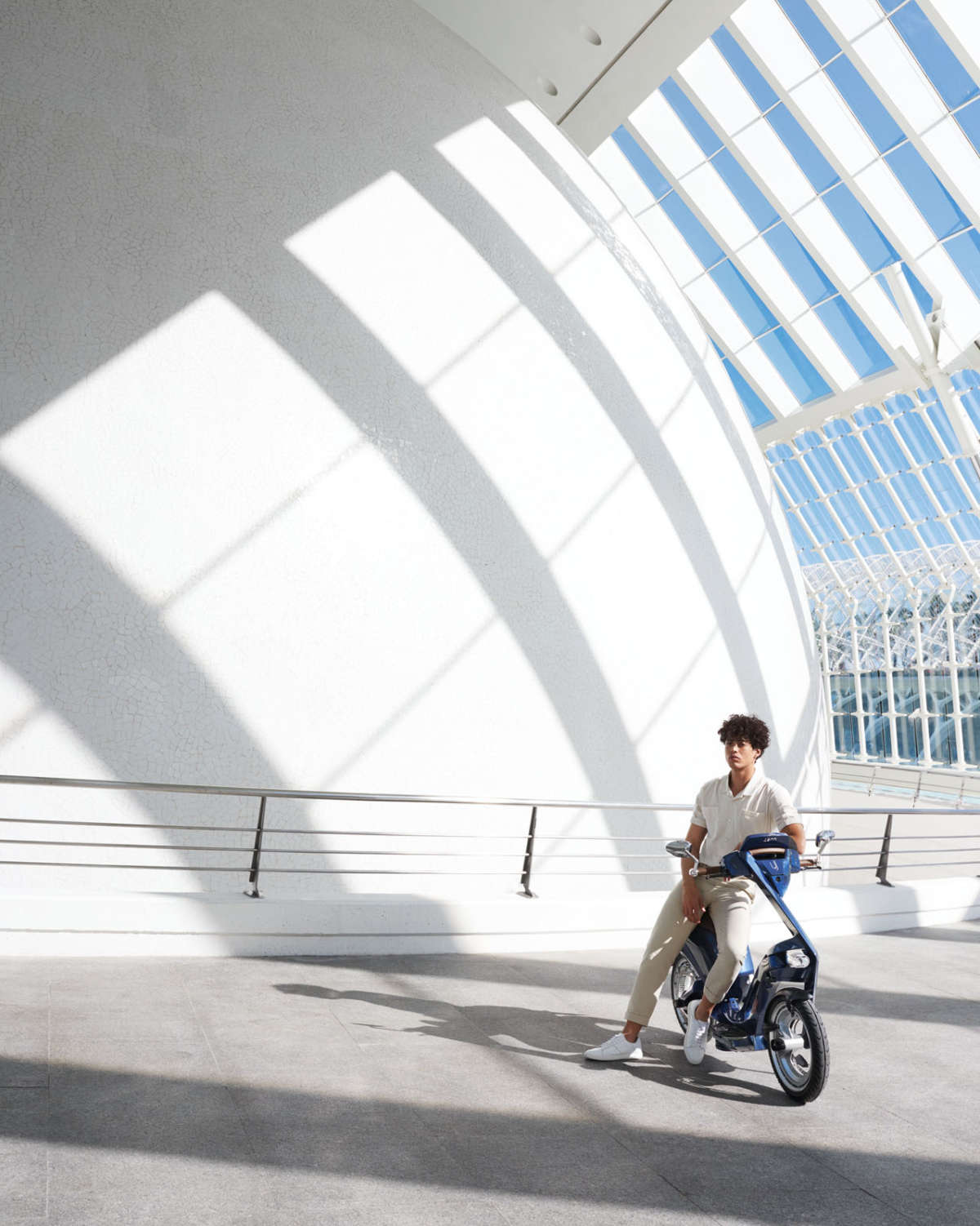 Electric scooter Trapped rides on 14-inch wheels that have special customized suspension for a more comfortable ride. For sharp angles and asymmetrical shape frame we can thank magnesium fiber, with smart ones system folding but this task is completed in just five seconds. Another specimen is captured clean, sustainable and silent mobility. It comes with two batteries, which is enough for 70 respectively 150 kilometers driving, and it can be filled already in two hours. The weight of the folding scooter is between 43 and 48 kilograms, which of course depends on sizes batteries. The removable battery can also be used as an extremely large one portable charger and as bluetooth speaker.