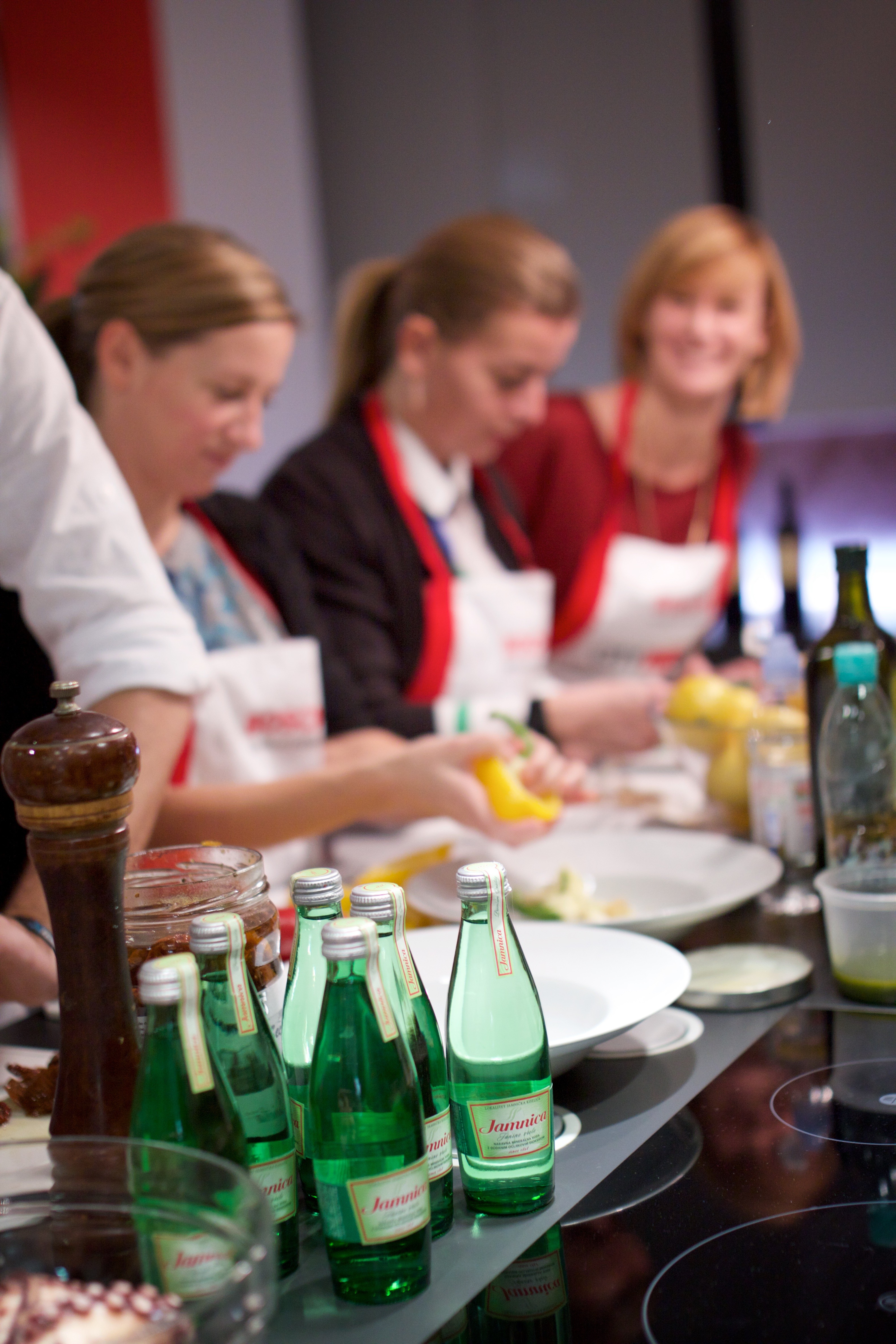 Skillfully and with a lot of humor, he led us and engaged us in the preparation octopus in salad, chestnut gnocchi with shrimps and fish, baked potatoes and beef steak and desserts with goat cheese, which nicely rounded off three hours of socializing by the stove. With the food, our taste buds were also pampered different wine and the official water of the event Pit.