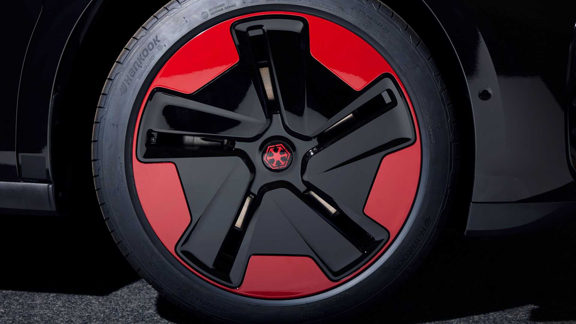 The dark side is represented by the truck version of the electric ID.Buzz. The color black dominates here, complemented by red, which is the same as the lock of the lightsaber wielded by Darth Vader in the saga. Also in this case, we see the logos on the rims and windows, but this time with the emblem of the Galactic Empire.