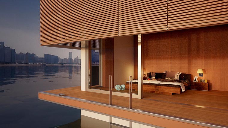 Waterloot it starts with the idea of living on the water, which has many advantages, and continues in a home that is completely self-sufficient in every way. The steel structure, which is surrounded by wood and a lot of glass, is technologically superior in every respect. You will obtain electricity from solar collectors and micro power plants on the underwater part of the hull. You will draw water right from the river and clean it with filters so that it is usable and drinkable. Of course, the home offered by Waterlovt is smart and fully automated. It is available in different sizes. From 90 to 240 square meters.