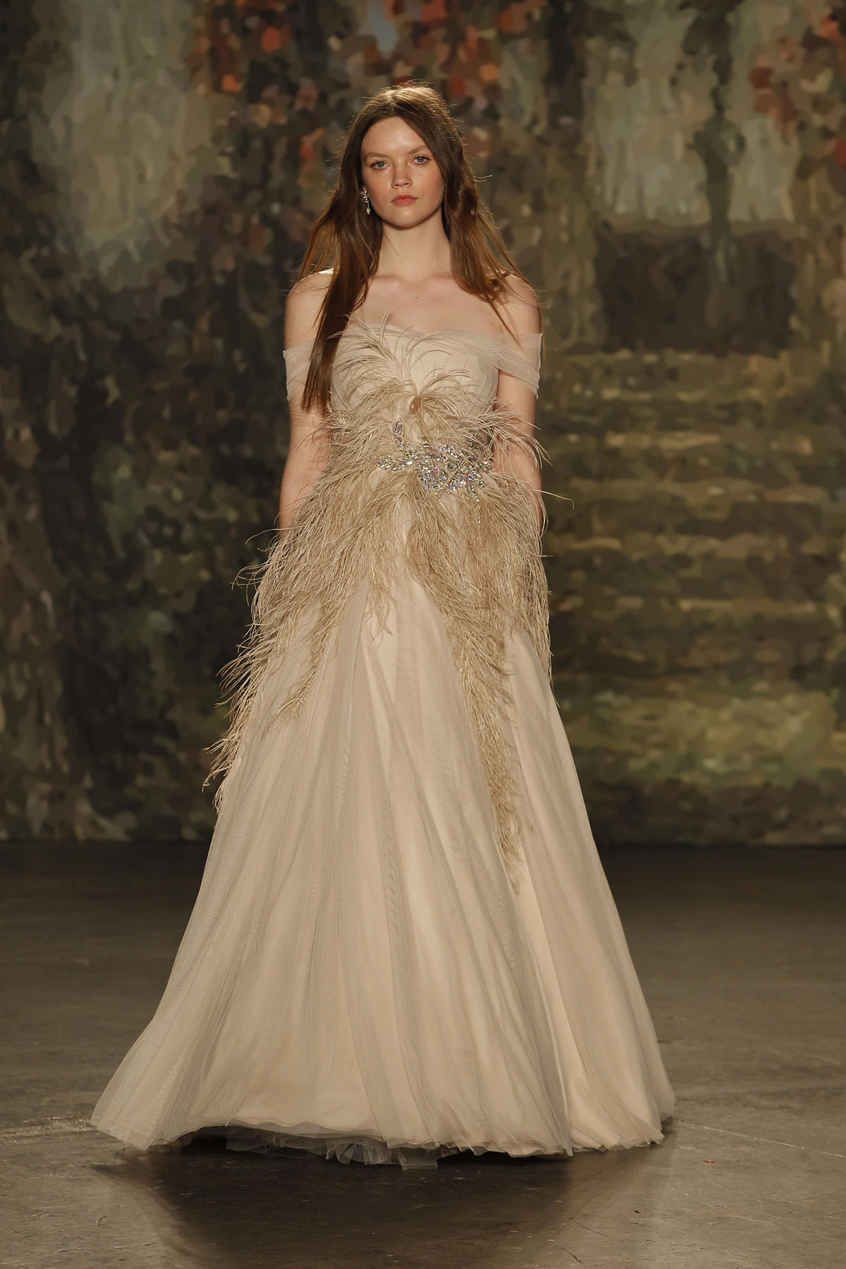 Traditional wedding dresses with fluttering feathers? Designers always know how to emphasize clothes and thus conjure up an additional dimension.
