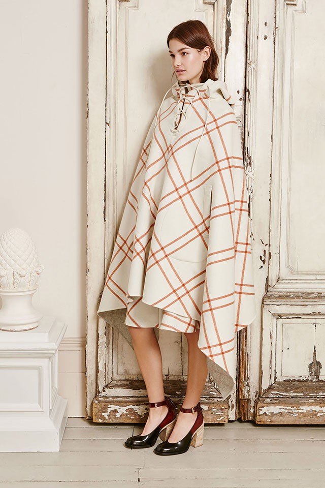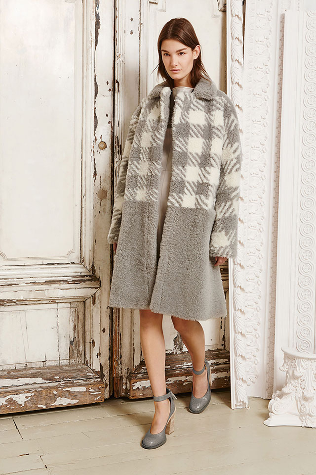 At Topshop Unique, London Fashion Week Autumn/Winter 2015 presented a wealthy rebel from the 70s of the last century. Models dressed in extremely wearable clothes walked down the runway to the music of the legendary The Strokes and The Smiths. We were most impressed by the fashion elements: a black parka with faux fur trim, a dress with vibrant patterns, a velvet blazer, a wool skirt with a checkered gingham print and a huge faux fur scarf.