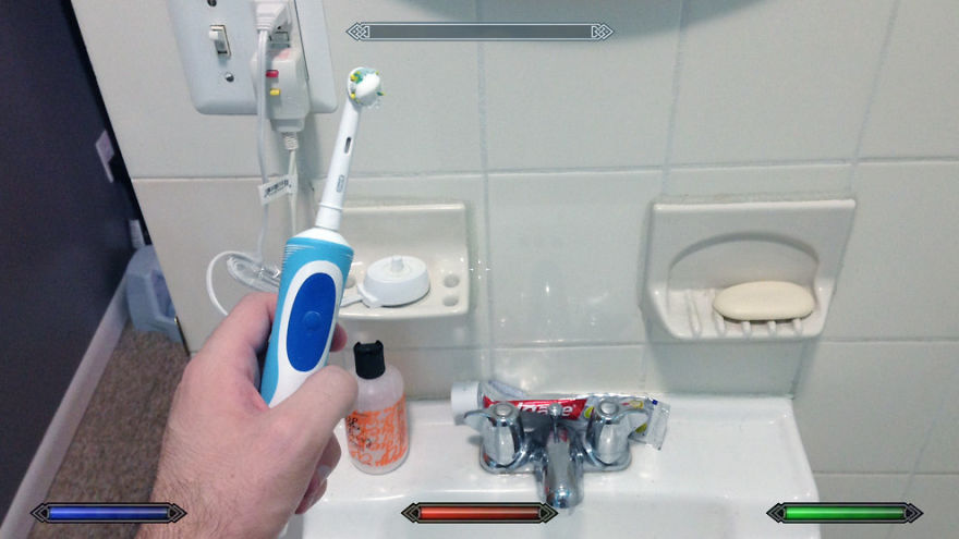 The imagination of the illustrator Adam Ellis knows no bounds. At least that's what it seems when looking at his photography project, which represents what our daily life would look like through the eyes of a player of a popular computer game The Elder Scrolls: Skyrim. When we are not threatened by dragons and other similar horrors, life in a computer game seems a bit boring. But don't worry, a talented illustrator can turn even a completely normal day into something extremely fun. We can't wait for someone to invent this kind of game, or even better, a computer game in which we will have to work. We will definitely be playing it while working.