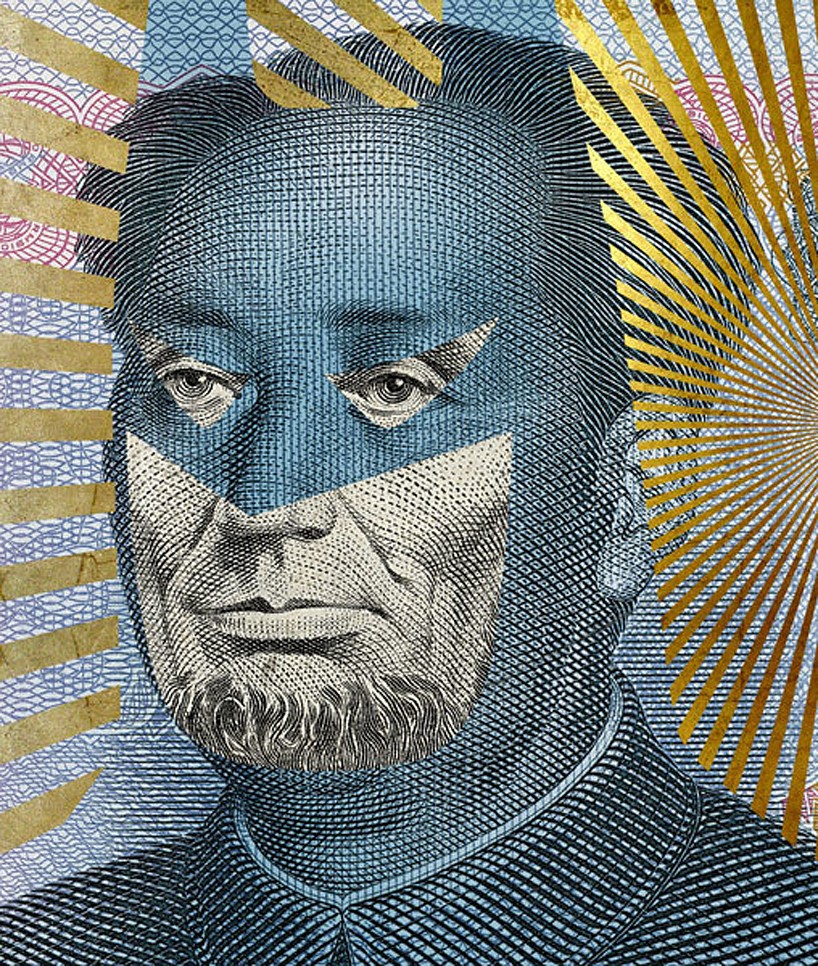 Alessandro Rabatti tried to start a debate about the current economic crisis by remaking the most famous banknotes, which feature portraits of world leaders such as Queen Elizabeth II and Abraham Lincoln. By putting superhero masks on the portraits, he wanted to express the irony that stems from the fact that the main task of world leaders is to save the world. The bold compositions, with which he illustrates the ever-increasing distrust of the public, definitely attract the eye and make you think...
