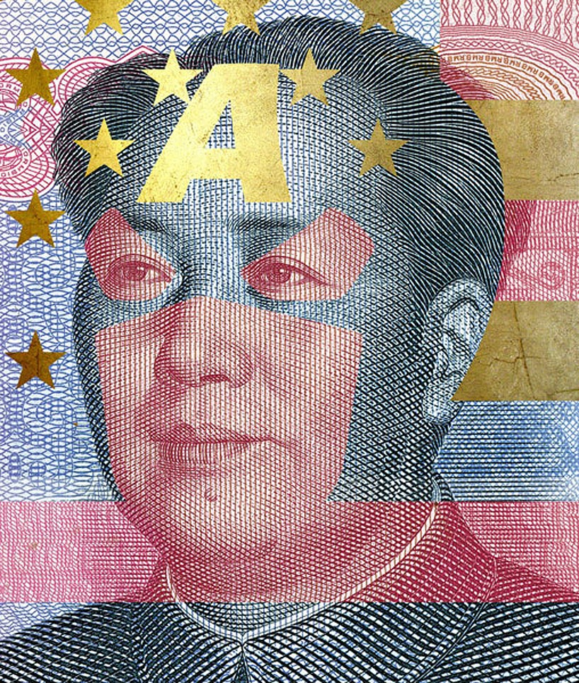 In the "Facebank" series, Italian artist Alessandro Rabatti combined economic icons with comic book heroes. With the artful processing of British, American and Chinese banknotes, he tried to draw attention to the current economic crisis and illustrate the actual "value" of money.