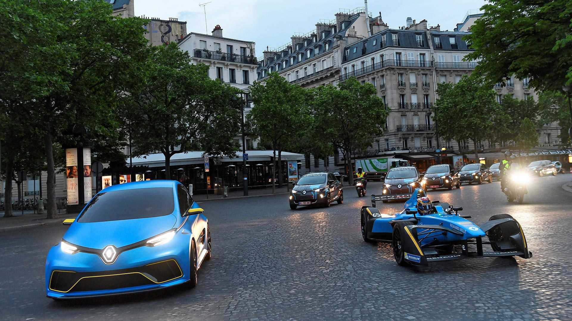 Renault's e.dams team is currently the leader in Formula E, with Sebastien Buemi and Nicolas Prost occupying first and third place among the drivers. In honor of this, and because the Formula E race happened to be in Paris, Renault decided to have an electric parade through the city of lights.