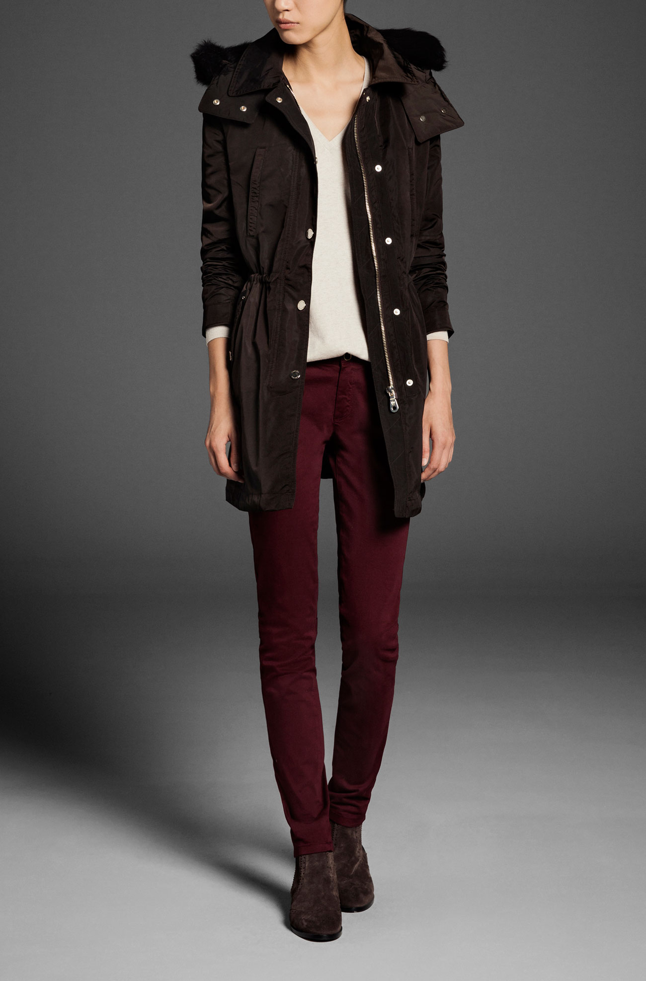 These are just two looks from the winter wardrobe Massimo Dutti, which includes leather, check patterns, long knits, loose, short, tweed coats, biker ankle boots and leather boots. Light shades of brown, gray and yellow are placed next to dark shades. A classic look with bold accessories for different daily occasions.