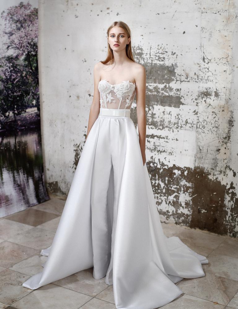How to surprise the most at a wedding? Maybe by choosing something for your wedding dress that deviates from the norm, that is, think outside the box and don't care what others think. They are certainly one of the most popular models of this type of wedding dress an interesting pantsuit or spiderman, which you will find at designers such as Lela Rose and Galia Lahav. Bonus? You can easily recycle and reuse such a dress.