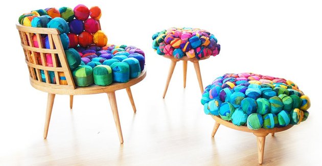 Ozroma furniture as designed by an award-winning Istanbul designer Meb Rure. He transformed the waste material into a beautiful three-piece furniture series that includes a chair, an ottoman and an armchair. Royal pieces that were designed to command attention in the room.