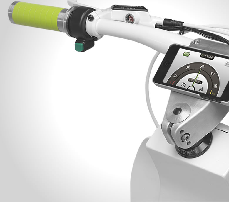 Xkuty "electric", the electric motor from the Spanish manufacturer "The Electric Mobility Company" is one of those products that we can only say - the future is really knocking on the door. With the engine, the user largely controls the application itself or smartphone. Through this, it manages the vast majority of functions, such as maximum speed, driving and acceleration mode, battery consumption. Installing the "smartphone" is completely logical, in a central place, where there was always a counter on classic products of this type.