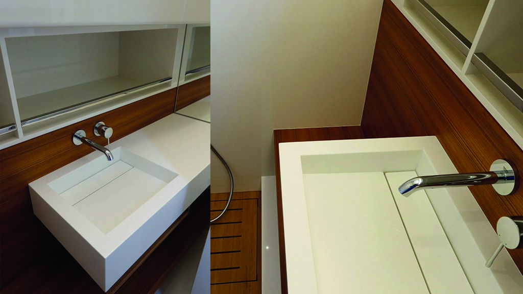 The front of the yacht rises steeply out of the water and looks quite high out of it. As a result, it is also easier to deal with bigger waves and is thus faster even in worse sailing conditions. The hull has a high V-shape, and around the bow is wooden edge, which acts as a kind of narrow walkway. The cabin is not overly large and is also in minimalist style, but there is still enough space for a comfortable bedroom and a large enough bathroom. At the time of purchase, the future owner can make up his mind any body color, and all other surfaces are available from any wood. Two take care of the drive engine Volvo IPS 600, and with their help the yacht reaches maximum speed 38 of knots. There is enough fuel on board for 300 nautical miles.