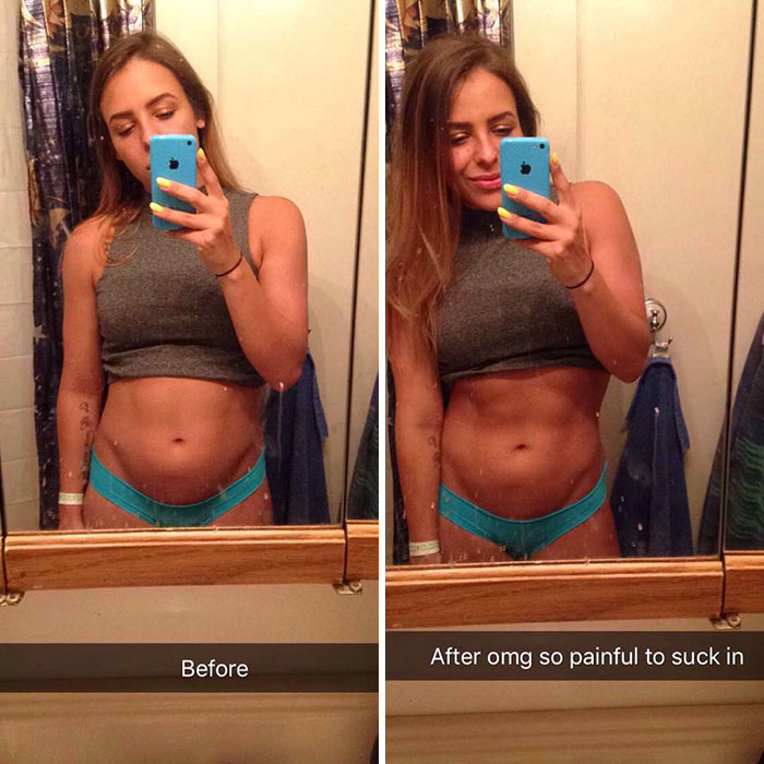 Recently, the internet has been flooded with photos of women who they reveal the truth behind "perfect" bodies. Although the photos below appear to be taken over a period of several months, there is actually a difference a few seconds.