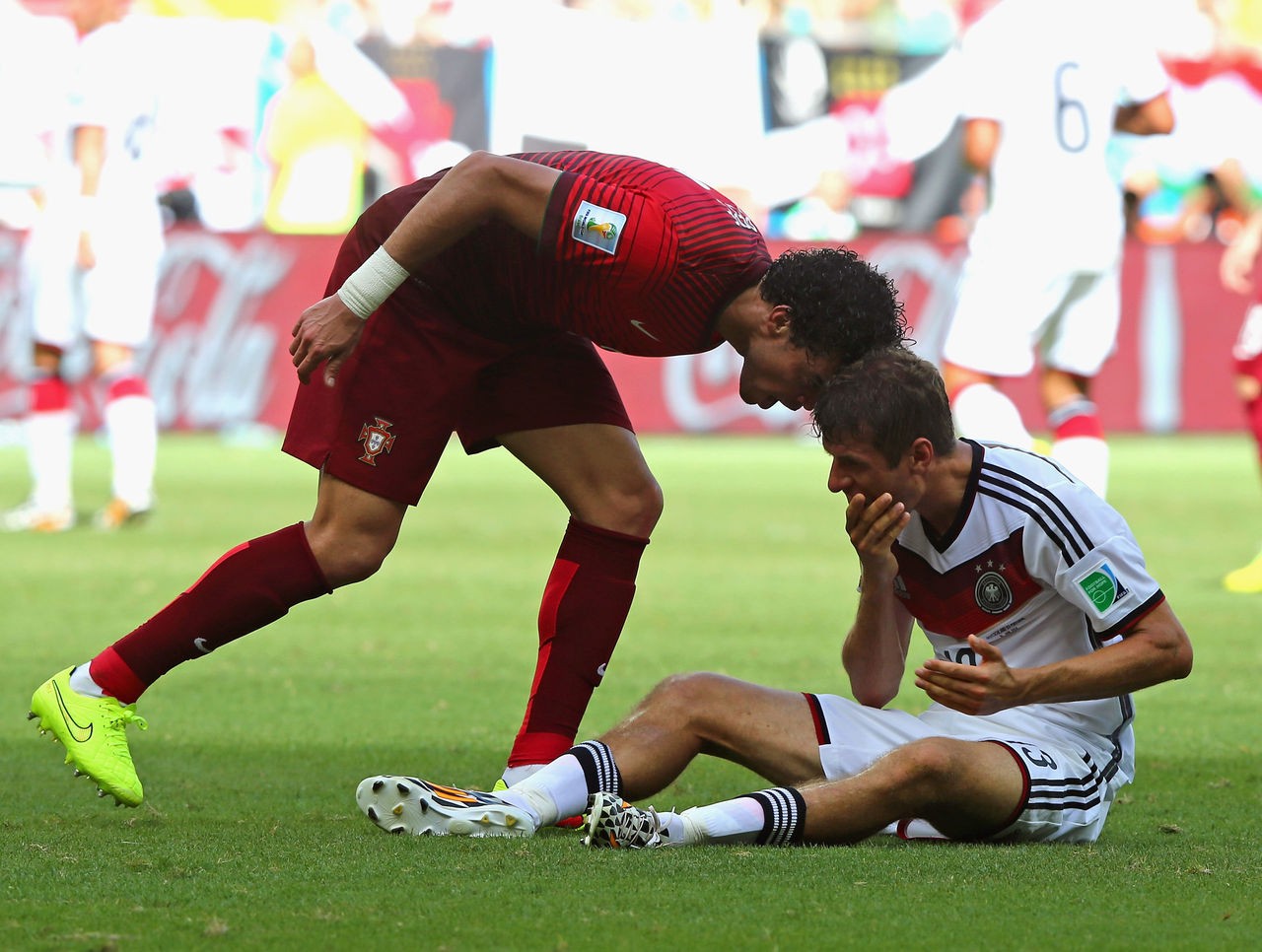 Otro de esos futbolistas, a los que los alumnos de AGRFT podrían acudir para recibir una lección de actuación, es Pepe, que ya en su primer partido en el Mundial con Alemania 'justificó la fama de jugador sin modales'. El 'frontman' distaba mucho de ser el icónico de Zidane, pero ese tipo de jugadas, aunque sólo sea señaladas, son inaceptables en el fútbol y si Müller y Müller hubieran cambiado de roles entonces, probablemente Pepe estaría tirado en el suelo de 'dolor' aún hoy. .