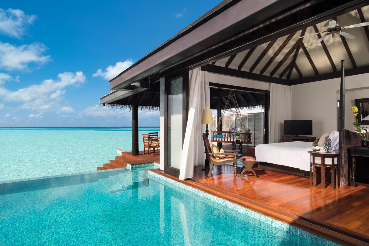 Las Maldivas ofrecen uno de los escenarios más hermosos bajo el nivel del mar, por lo que no es de extrañar que la mayoría de los interiores submarinos se originen aquí. Anantara Kihavah Maldives Villas es un alojamiento de lujo con villas sobre el agua rodeadas de mares azules y playas de arena blanca. La propiedad también cuenta con un restaurante llamado Sea, donde se encuentra la única bodega submarina. También hay un comedor circular bajo el agua, rodeado de la vibrante vida bajo el nivel del mar.