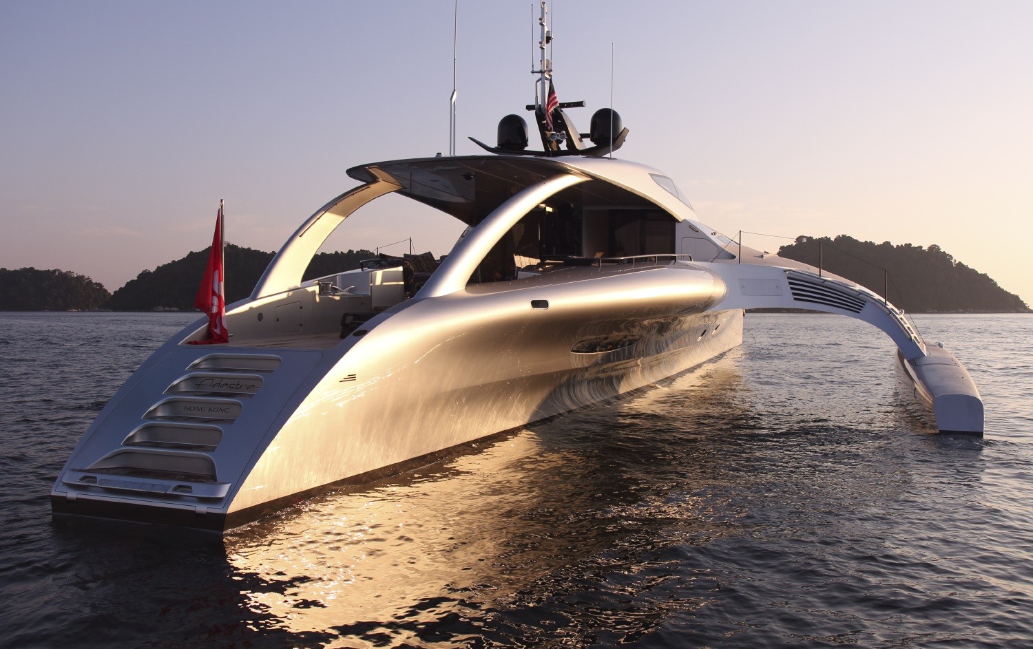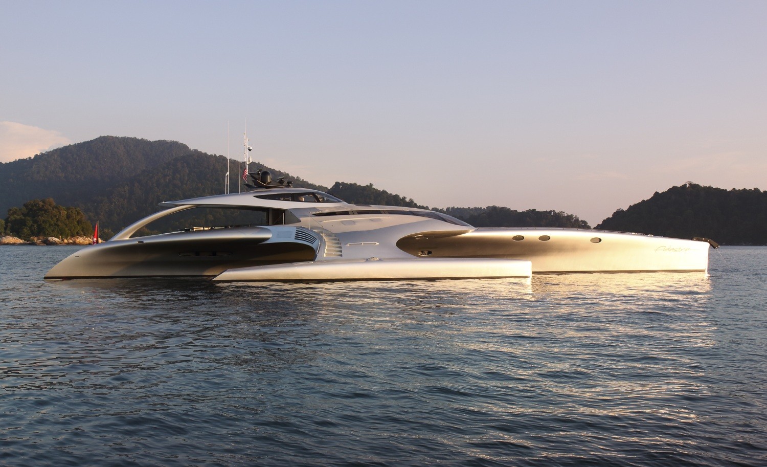 Ad Astra je nadvse prikladno ime za 42,5 metrski trimaran – plovilo, ki izgleda, kot da je pravkar pristalo iz vesolja. (»Ad astra« je latinski izraz, ki se prevaja kot »k zvezdam«).