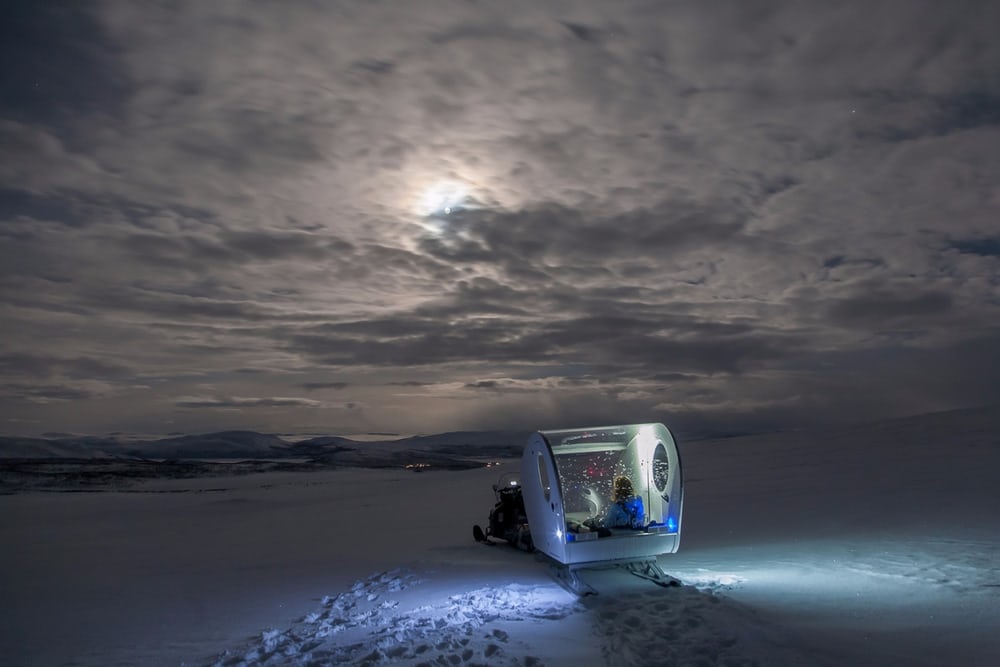 Puedes encontrar trineos únicos en Kilpisjarvi en el sur de Finlandia a lo largo de la frontera noruega. Actualmente es dueño de una empresa Viajes fuera del mapa solo ofrecen un trineo, pero en el futuro complementarán su flota de vehículos con este tipo casas móviles. el servicio esta disponible de diciembre a marzo.