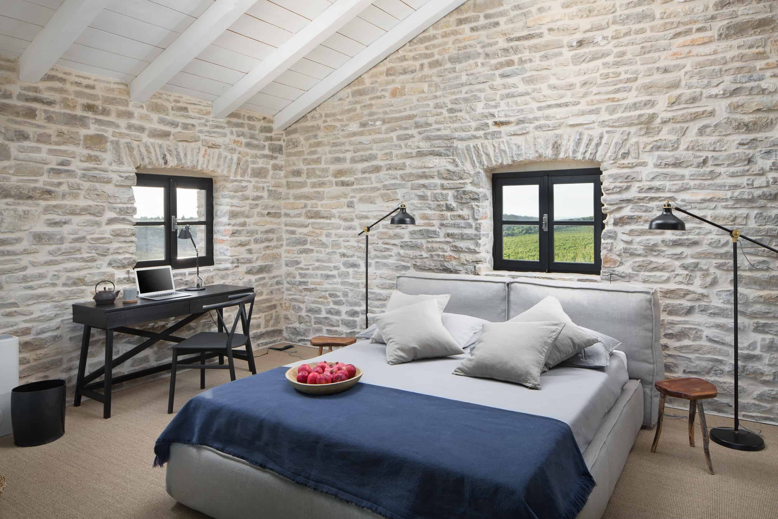 En la preciosa finca Bas de Bas, de donde también proceden los reconocibles vinos de Bibich, encontramos dos preciosas villas de piedra. La finca se encuentra a pocos kilómetros de Skradin, y los propietarios han transformado las antiguas ruinas, ubicadas en un terreno de seis hectáreas cubierto de viñedos y olivos, en una villa moderna.