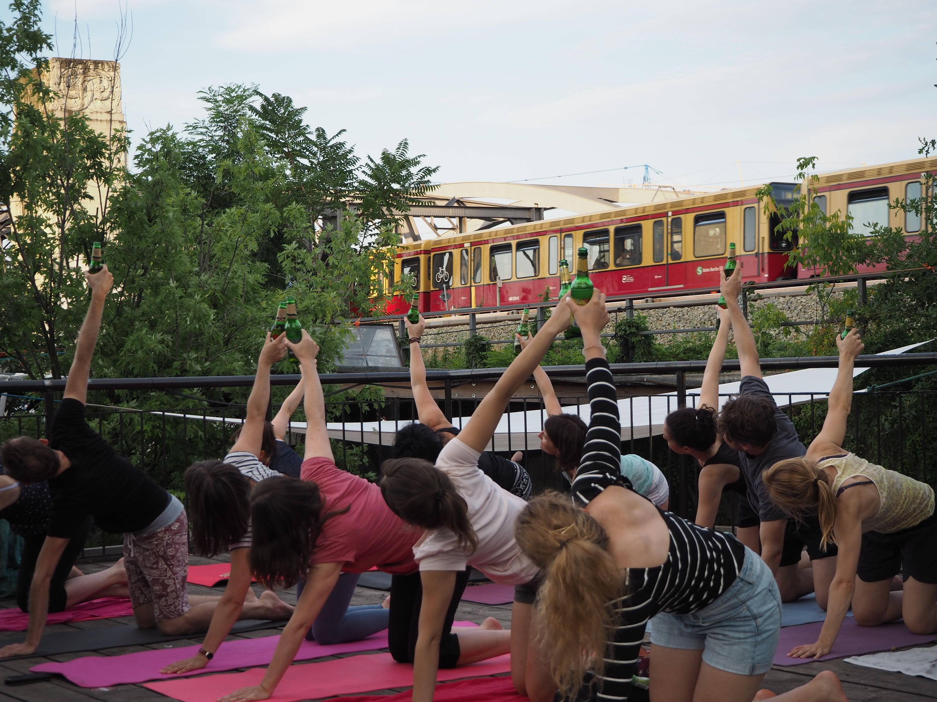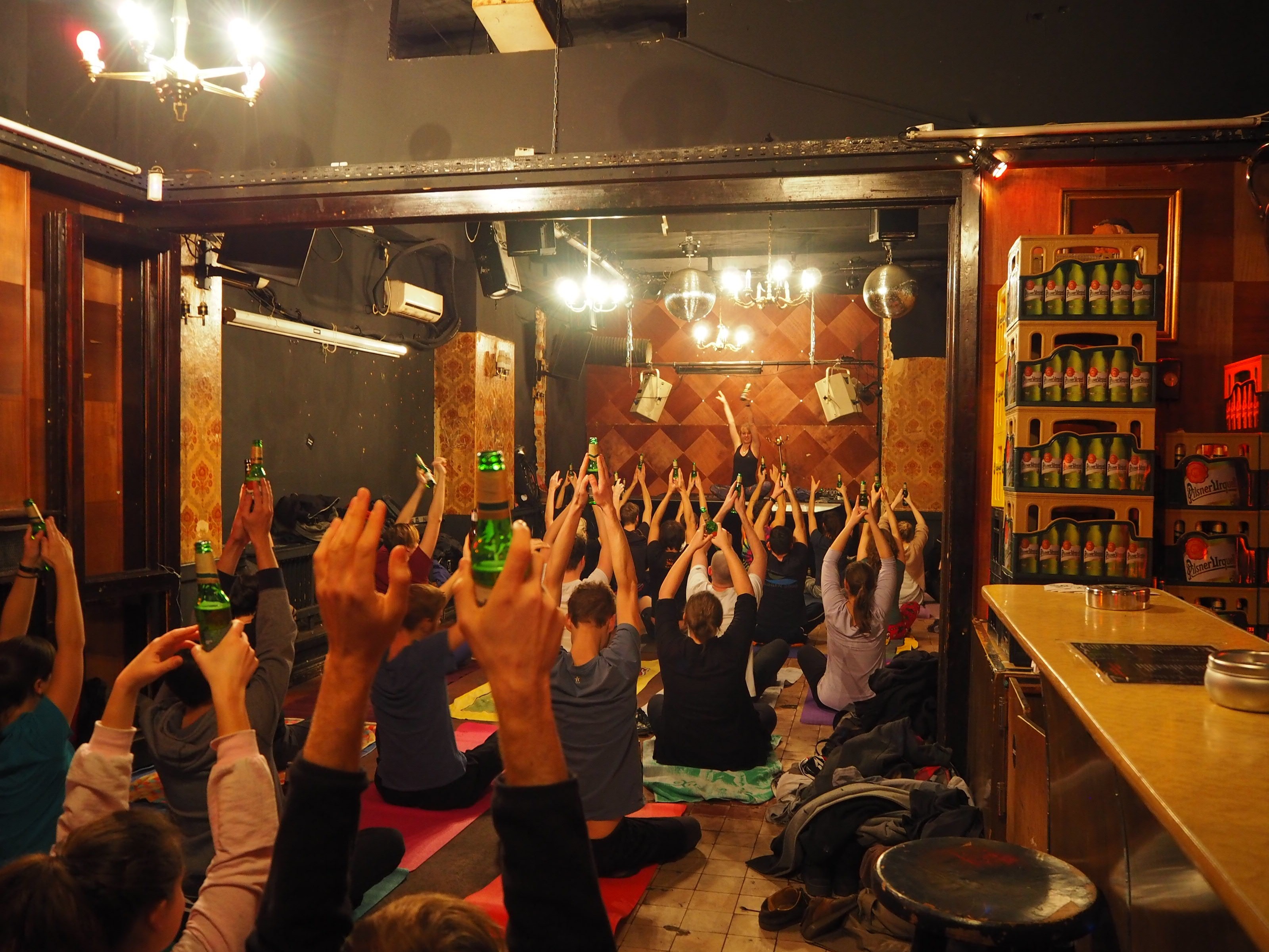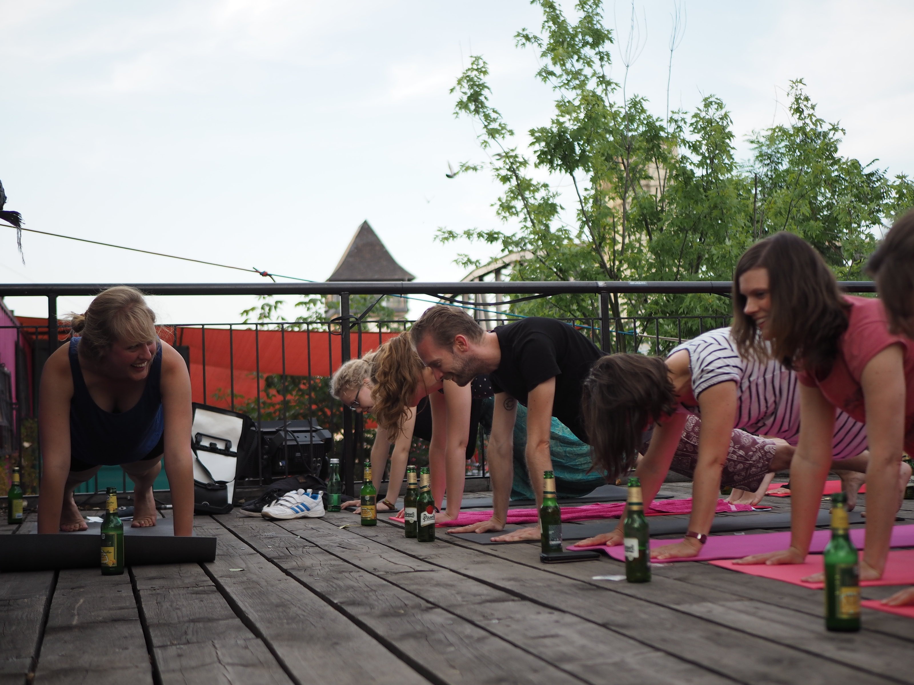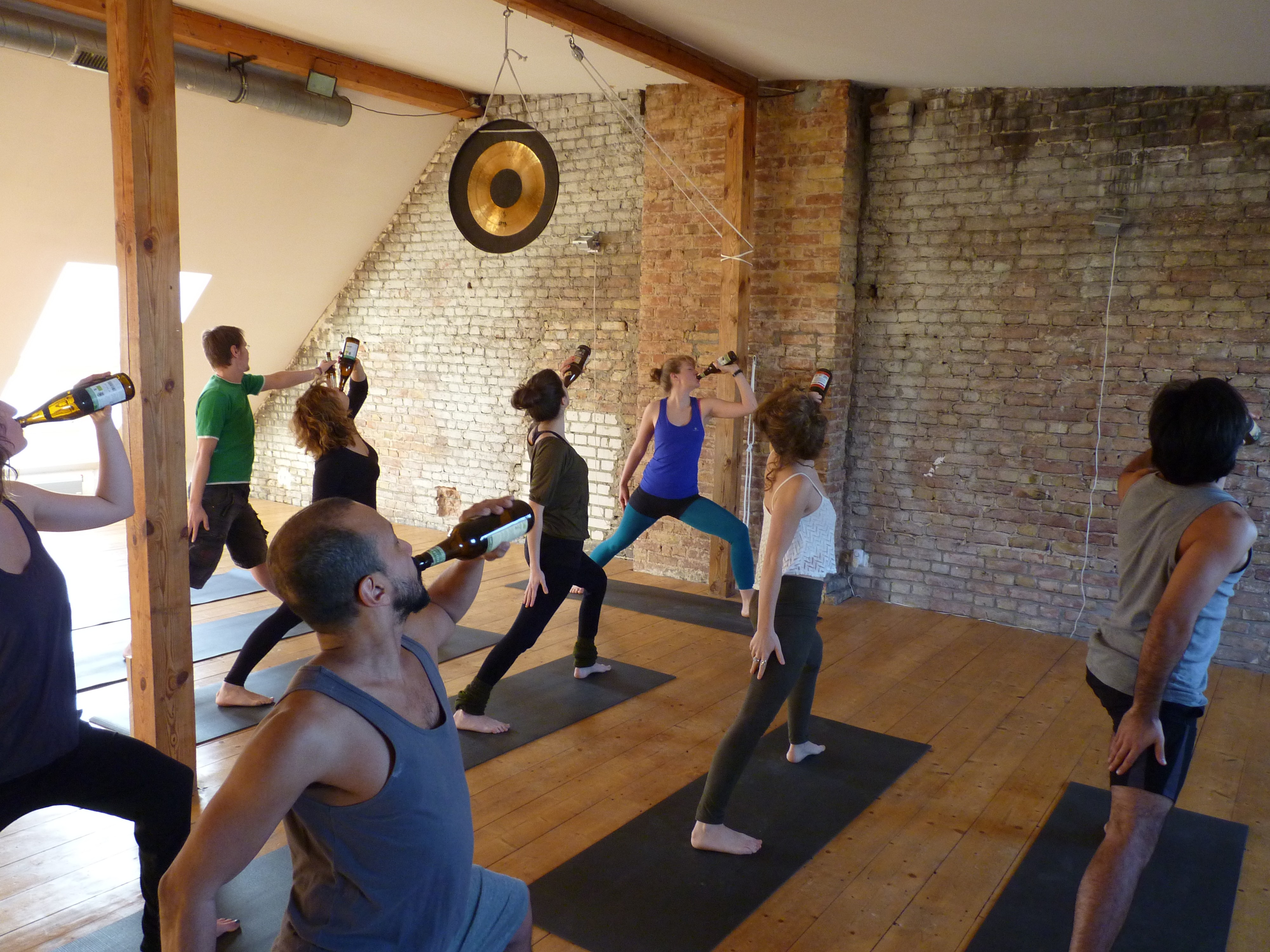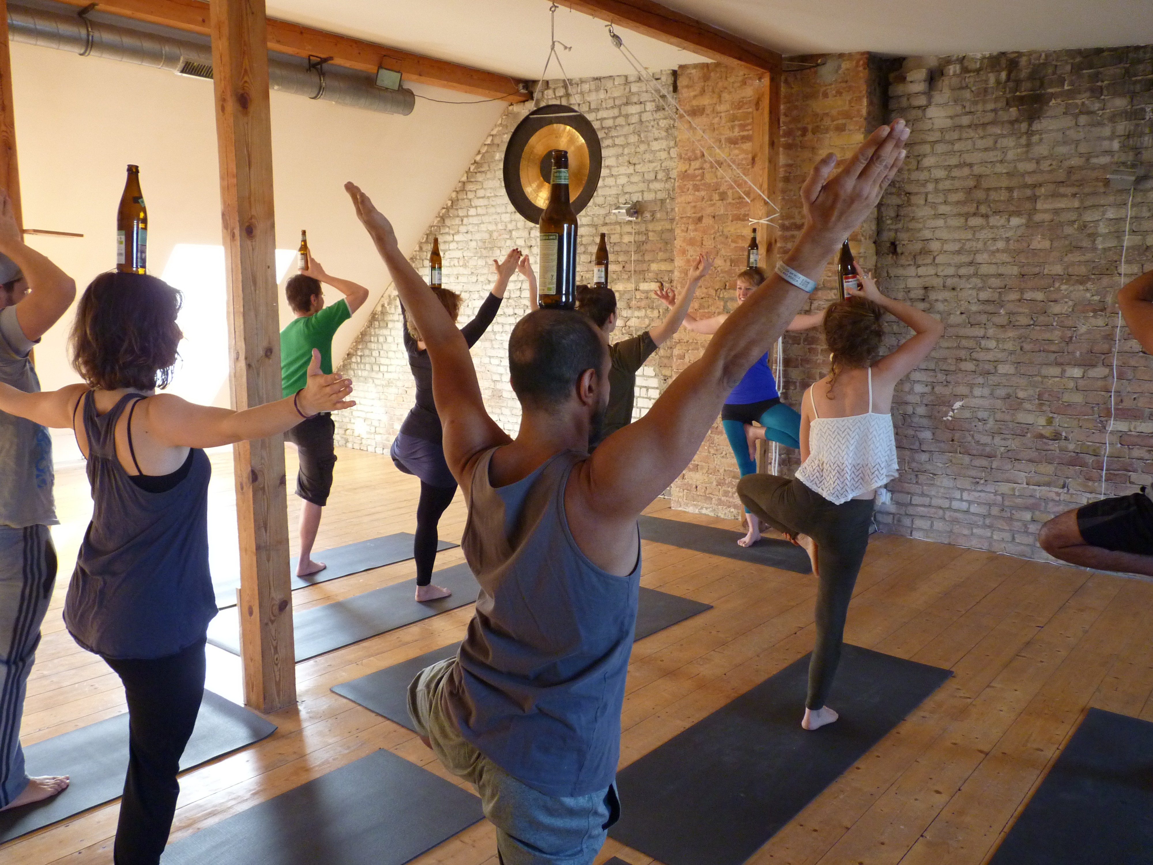 CervezaYoga está destinado a todos los que aman la cerveza y el yoga. Es una forma divertida de yoga, lo cual no es ninguna broma. La cerveza se utiliza como atrezzo y como bebida durante los ensayos. Tienes que traer tu propia base a las reuniones y la cerveza te espera allí. Te sugerimos que también lleves algunos contigo. toalla de cocina, porque si aún no eres bueno jugando con una botella, puede suceder que la cerveza fluya hacia el suelo en lugar de bajar por tu garganta.