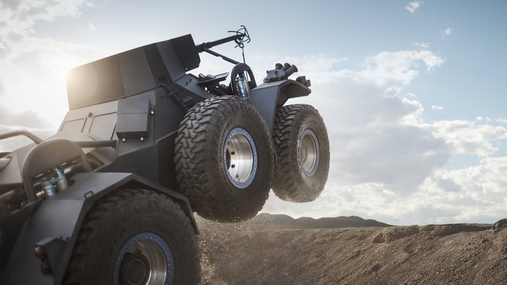 Su arma habitual es un triaxial reconvertido. Semirremolque de 800 caballos de fuerza (Chevrolet Silverado), que cuenta con suspensión delantera independiente (para que las ruedas puedan moverse independientemente unas de otras) y ruedas delanteras de 26 pulgadas y traseras de 34 pulgadas; lo cambió por un modelo reconstruido. un tanque de seis ruedas (!) hurón explorador de 1959. Este fue producido en Gran Bretaña entre 1952 y 1971 y fue impulsado por Motor Rolls Royce V6. BJ Balwdin lo reemplazó con el monstruoso motor de la marca. General Motors LS V8 y agregó un par adicional de ruedas al tanque por si acaso.