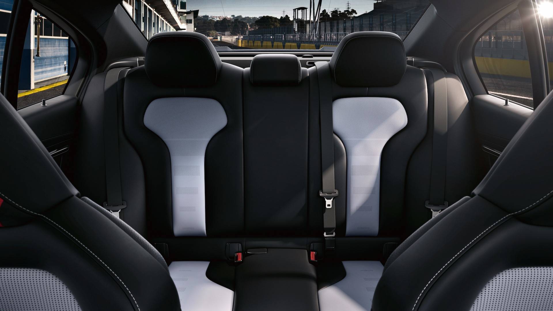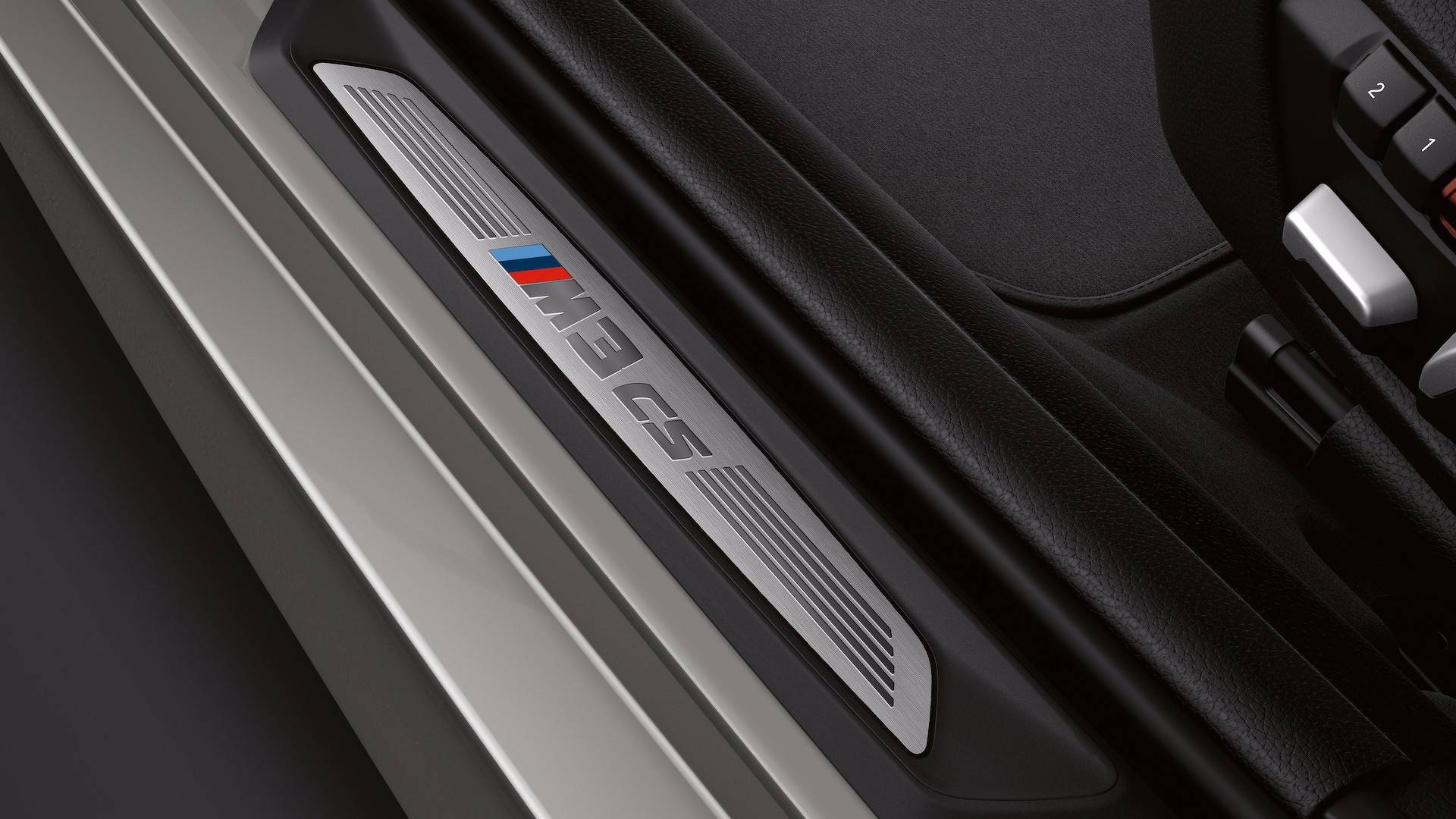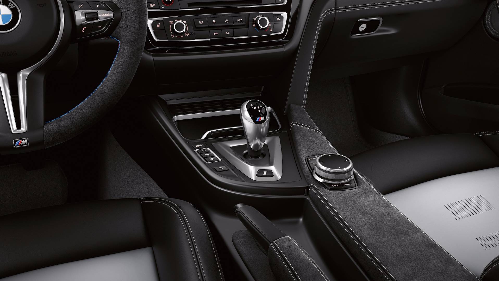 El interior presenta una combinación de cuero y Alcántara. Recién instaladas, están especialmente diseñadas y son más ligeras. METRO-asientos, así como el volante tapizado en Alcántara gris. Entre otras cosas, el interior está lleno. CS-Marcas que marcan esta serie especial. bmw m3.