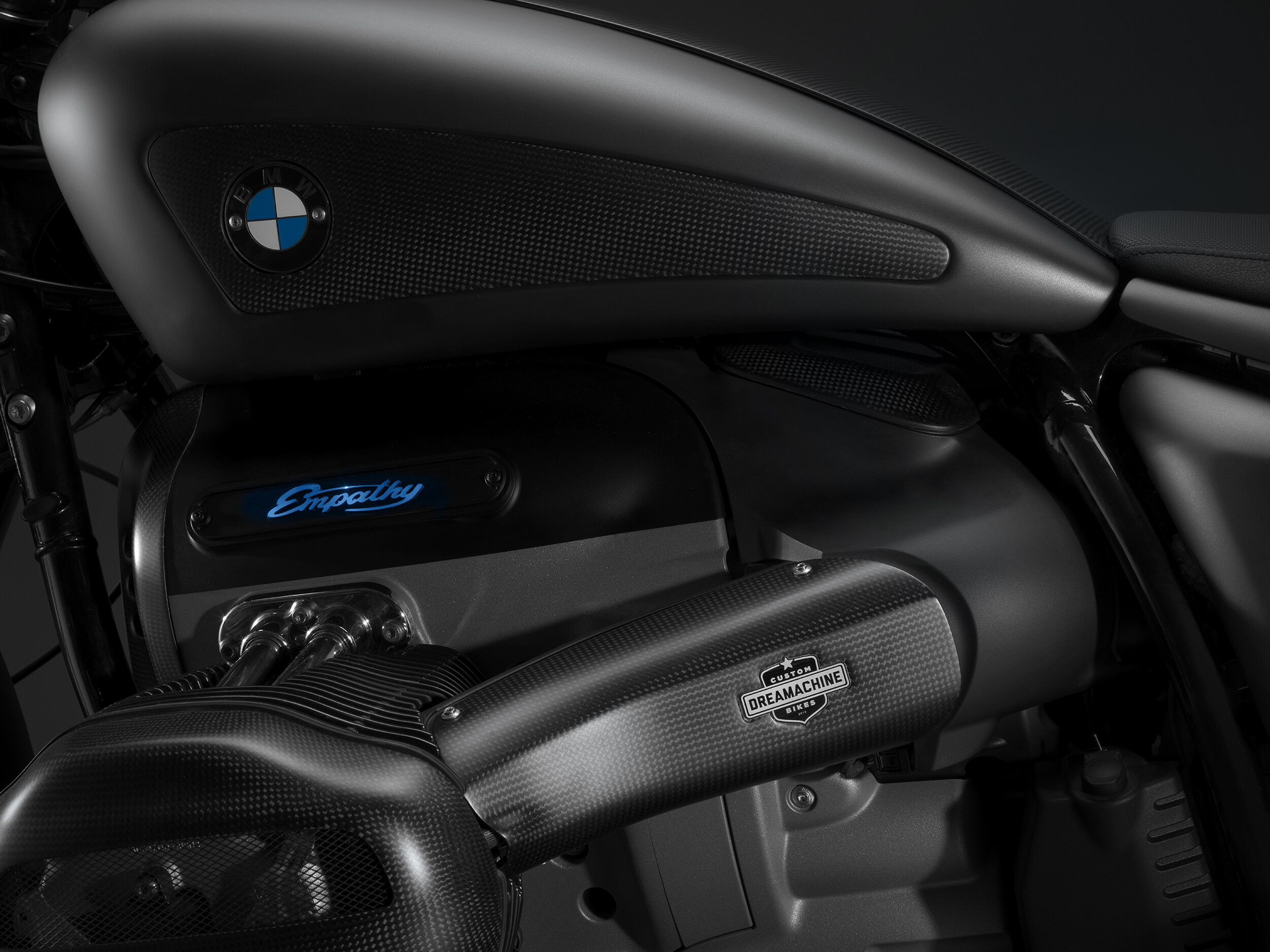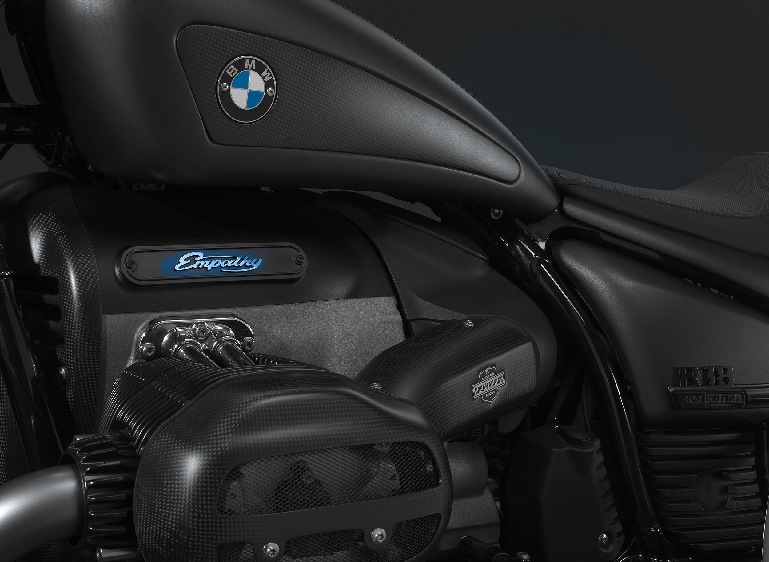 La motocicleta BMW R18 es la primera motocicleta BMW de su tipo convertida en Eslovenia. En colaboración con la empresa Máquina de los sueños y empresas reconocidas mundialmente Akrapovic el BMW R18 obtuvo un nuevo aspecto con algunos componentes únicos. El depósito de combustible de dos piezas, realzado con una tapa y paneles laterales de carbono, es obra de Dreamachine, al igual que la protección de carbono de la parte delantera de la unidad, los guardabarros delantero y trasero con luces de freno LED e intermitentes Kellerman. Se le agregaron llantas marca TTS, el asiento, careta delantera con faro led, portamatrícula lateral y volante son nuevos, los retrovisores son diferentes. El sistema de escape es una obra única de Akrapovič, que proporciona un inconfundible sonido profundo de dos cilindros con un paisaje sonoro. La especialidad de la moto es el toque final. letras brillantes de empatía en el bloque motor, lo que le da a toda la motocicleta un sello especial y una apariencia atractiva.