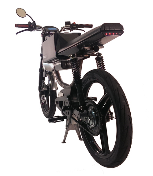 La empresa Bolt presentó un modelo futurista Perno M-1, que es una mezcla bicicleta de montaña eléctrica, motocicleta y ciclomotor. Presume de un motor con potencia 5500W (alcance de 56 kilómetros), lo que permite velocidades superiores a 60 km/h, pero sólo si tienes activado el modo de conducción deportiva. En el caso de uno ahorrativo que utiliza sólo 1000 W de potencia, no puedes superar los 32 km/h, por lo que batería de fosfato de litio de 33 V conduce 24 kilómetros más.