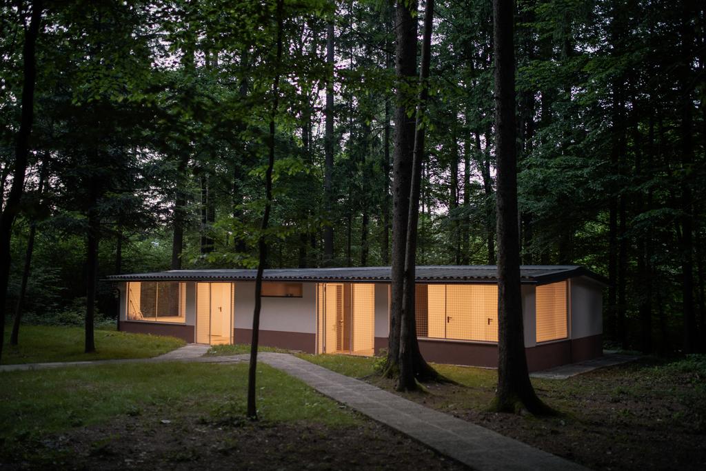 Hay cinco casas en el campamento. Lecho del bosque. Son casas de madera hechas al estilo del entorno, en las que hay un dormitorio con mobiliario interior (colchón, ropa de cama). La cabaña puede acomodar a dos o tres personas, o incluso a una familia de cuatro. Las casas representan el entorno. la costumbre flosser de pasar la noche, que es al mismo tiempo un elemento de la experiencia patrimonial: dormir en la naturaleza virgen y con el murmullo del río Savinja.