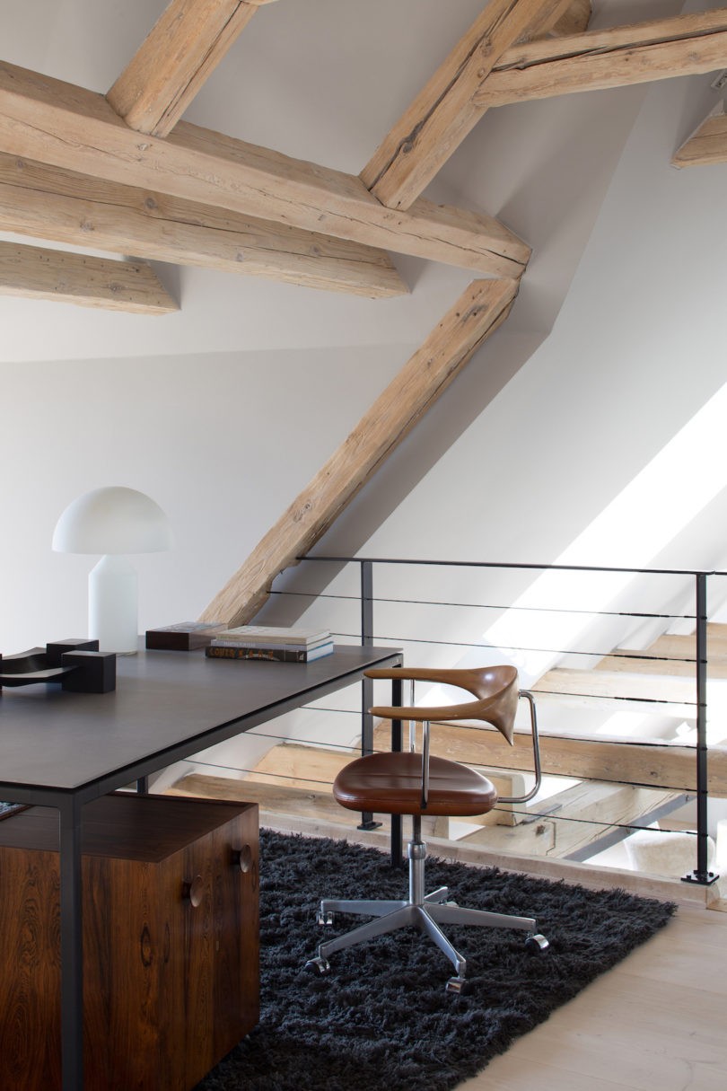Loft VIP, que se encuentra justo en la sede de la empresa en Copenhague, pero te recordará a casa más que una estancia en un hotel. vigas de roble evocarán una sensación de hogar, Habitación amueblada industrialmente y también satisfará a los estetas.