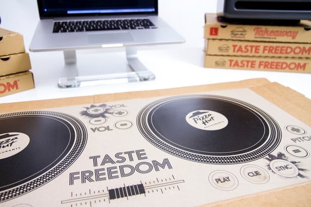 Una cadena de pizzerías Pizza Hut ella presentó cartón una caja de pizza que también funciona como mezclador de DJ. Se trata de una tirada limitada de cajas que se entregarán en ubicaciones seleccionadas de todo el Reino Unido. caja de pizza de DJ se conecta a una computadora portátil u otro dispositivo donde tengamos música almacenada a través de la tecnología Bluetooth.