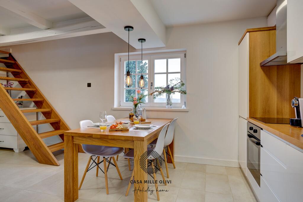 casa mille olivi o la casa de las mil aceitunas es el homenaje de la propietaria Ana Pisek a su padre, abuelo y bisabuelo, que compró las primeras aceitunas en Istria en 1868. Los primeros rastros de la existencia de la casa datan de 1813. Estuvo abandonada durante muchos años. En la década de 1990, los descendientes y actuales propietarios volvieron a él y lo repararon solo lo suficiente para evitar que se deteriorara. Pero el deseo de revivir la casa permaneció en ellos. Así, en 2017, iniciaron una completa renovación y recibieron a sus primeros huéspedes ya al año siguiente. Desde entonces, se han agregado más a la casa. terraza acristalada y piscina infinity.