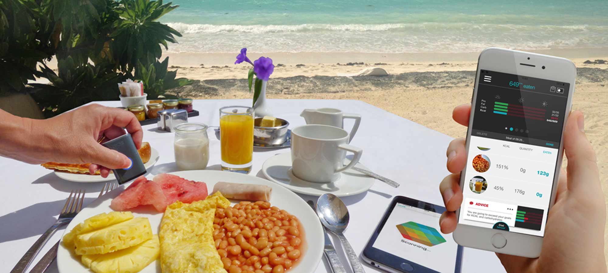Skenerju hrane SCiO je ”priložena” aplicación movil, ki pa ne razkrije le vsebnosti maščob, kalorij in drugih elementov v hrani, ampak je tudi prehranski strokovnjak, ki svetuje, koliko tovrstne hrane lahko človek zaužije v določenem obdobju. Kot rečeno, bodo rešitev posebej pozdravili tisti, ki morajo paziti na vnos na primer ogljikovih hidratov. Čeprav skener bere samo posamezna živila (sir, kruh …) in ni sposoben določiti sestavin celotnega sendviča, aplikacija omogoča ročen vnos, ko gre za bolj kompleksne obroke. SCiO skener je naprodaj za 230euros, medtem ko je aplikacija brezplačna, a je treba odšteti 9 evrov za mesečno naročnino.