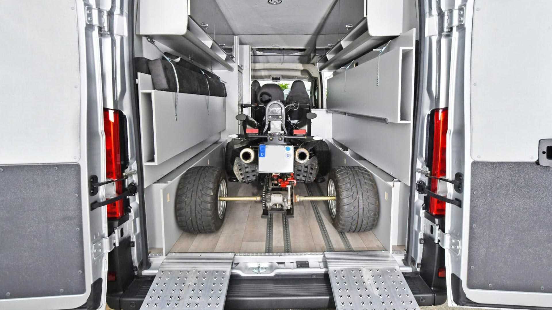 "Multi" tiene rampas de pie para conducir la tuya triciclo dentro de la camioneta. Si la carga es demasiado difícil, también está disponible. cabrestante eléctrico, con el que su "juguete sobre ruedas" podrá introducirse fácilmente en la cabina. Hay varios transportadores disponibles, por lo que no tiene que preocuparse de que la carga se vuelque mientras conduce.