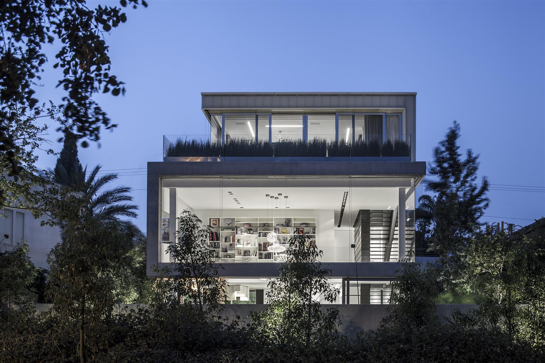 La moderna casa unifamiliar Concrete Cut House en Tel Aviv está formada por prismas rectangulares superpuestos, con una línea interminable de hormigón que serpentea entre sus paneles de vidrio. De ahí el nombre de esta lujosa casa de diseño limpio que se inspira en el entorno.