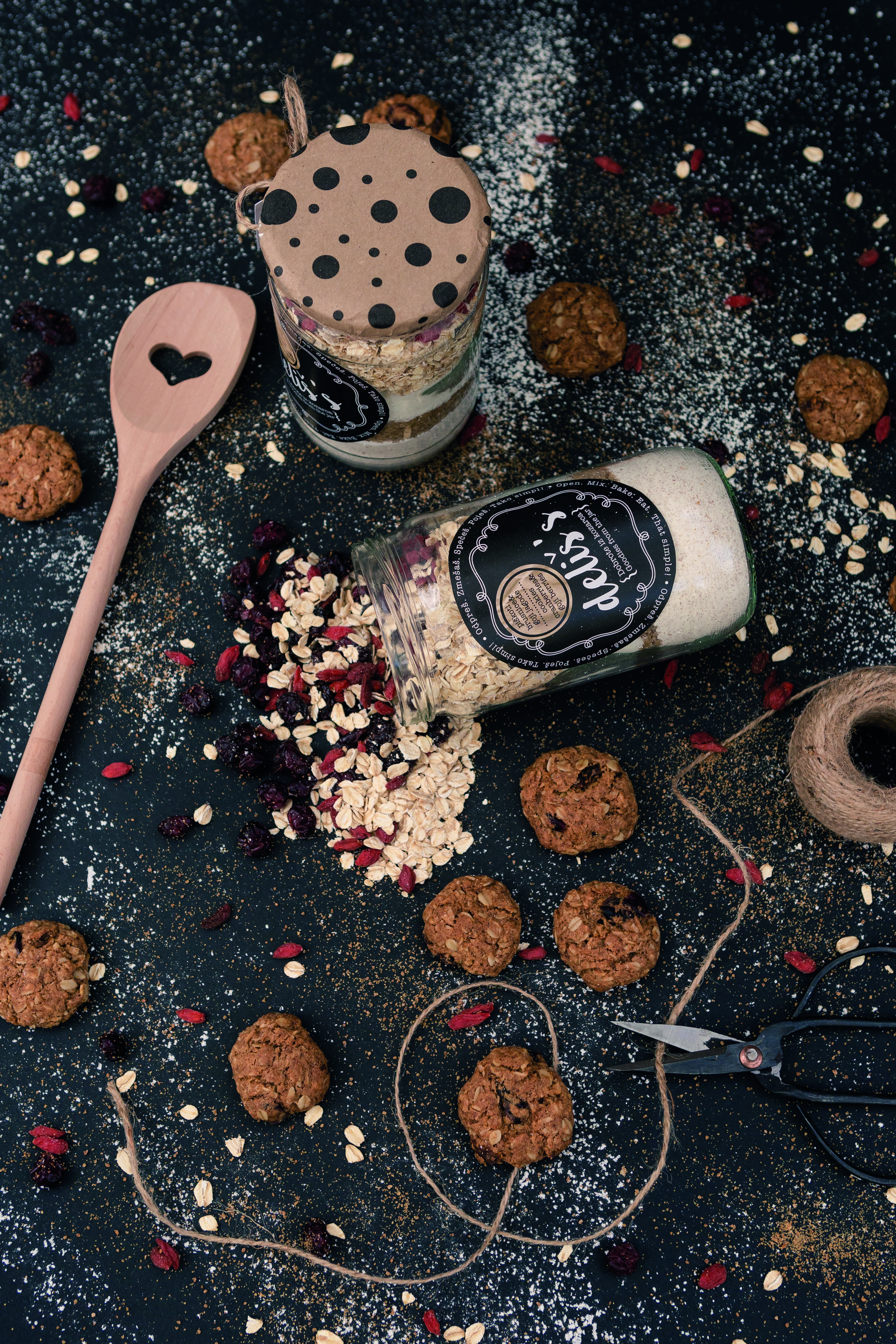 Ya solo el nombre dice que es delicioso, sencillo y casero. Compártelo. lindo vaso, en el que los ingredientes están entrelazados en capas, es un regalo especial, ya que permite al destinatario participar activamente en la historia del regalo. Con los ingredientes del tarro y las instrucciones incluidas, podrás hacerlo tú mismo. hornea diferentes tipos de golosinas. Cada vaso es único, ya que se llena a mano y se prepara con mucho alma. Personifica palabras como hogar, familia, amigos, calidez, cooperación, tiempo libre, cocina aromática y, por supuesto, socialización.
