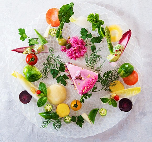 bajo delicioso tortas que en realidad son ensaladas, está firmado en japonés estilista de alimentos Mitsuki Moriyasu, que diseñó el nuevo concepto de comida en 2015, y ahora estos postres de verduras ya se encuentra en el menú del restaurante Bistró La Porte Marsella en Nagoya, Japón. Los productos son todo lo contrario de los pasteles clásicos (bueno, excepto en un sentido estético), ya que el énfasis está en la salud (los pasteles clásicos no son saludables). En lugar de harina, los ingredientes principales son abundantes huevos, nata, etc. superalimento sin gluten, eso contiene baja en carbohidratos. Incluyen todo tipo de verduras (incluidas las frutas), entre otras raíces y cáscaras, que maximiza los beneficios para la salud del pastel.