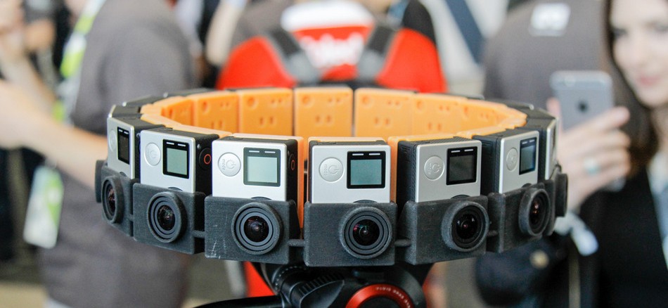 gopro Además de los drones, también se ha remangado en el campo de las cámaras destinadas a grabar imágenes espaciales o tomas de 360 grados, que se utilizará para dispositivos para pantalla de realidad virtual. Si te olía a Google, tenías razón. Este es en una conferencia reciente. E/S de Google 2015 mostró un especial dispositivo espacial, que consta de 16 cámaras GoPro Hero dispuestos en un círculo y s Campo de visión de 360 grados.